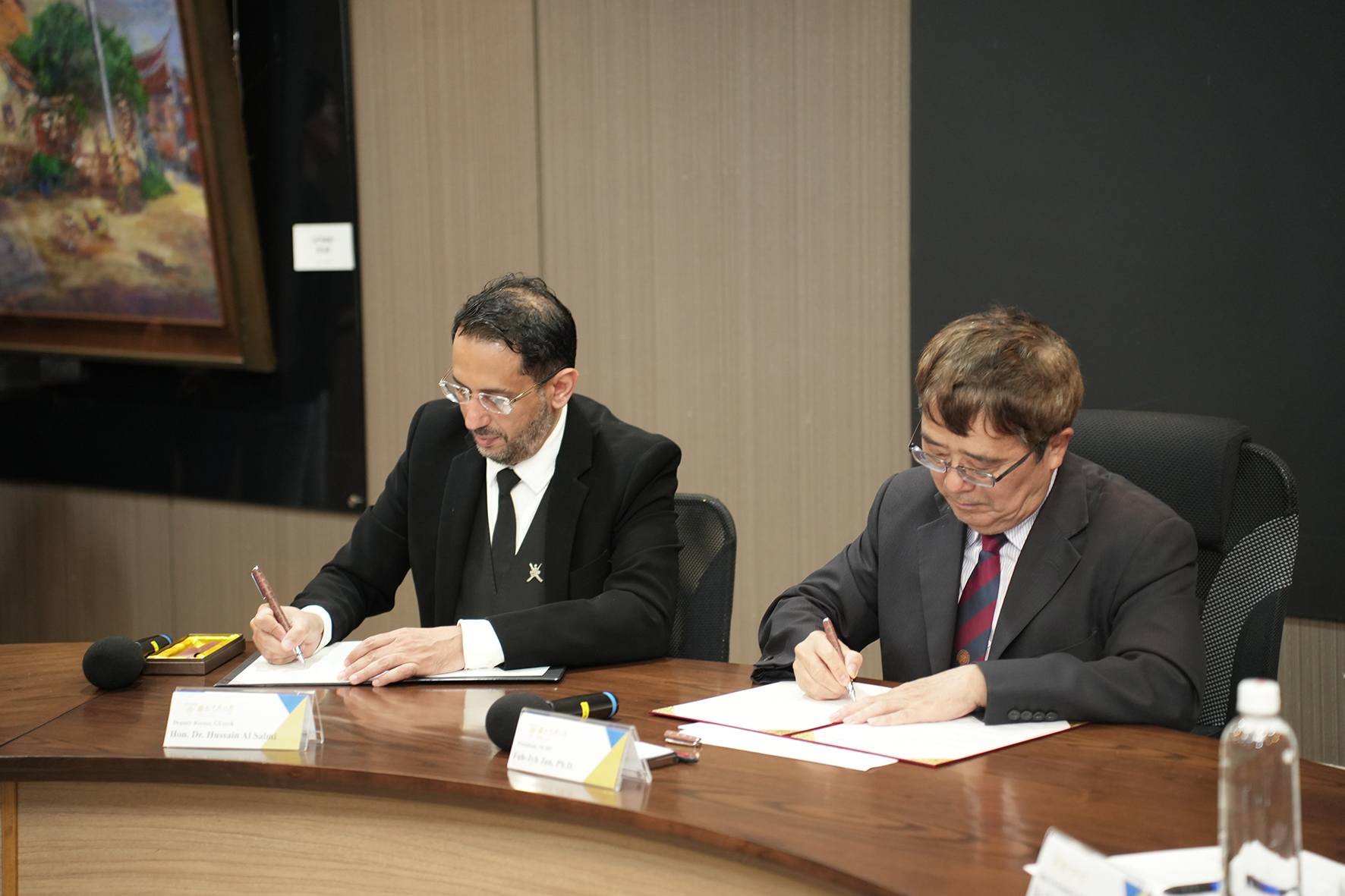 The signing ceremony was held at NCHU and witnessed by key representatives from both governments and academia. The MOU was signed by NCHU President Fuh-Jyh Jan and Hon. Dr. Hussain Al Salmi, Vice Rector of GUtech and a member of the Omani State Council. Distinguished guests included Minister Sheng-Ping Teng of Taiwan’s Ministry of Foreign Affairs, First Education Secretary Jing Zeng, Department of International and Cross-strait Education of the Ministry of Education, and Mr. Mohammed Muslem Said Al Baraami, Representative of Oman in Taiwan. Their presence underscored the strong governmental and academic commitment to this pioneering collaboration.