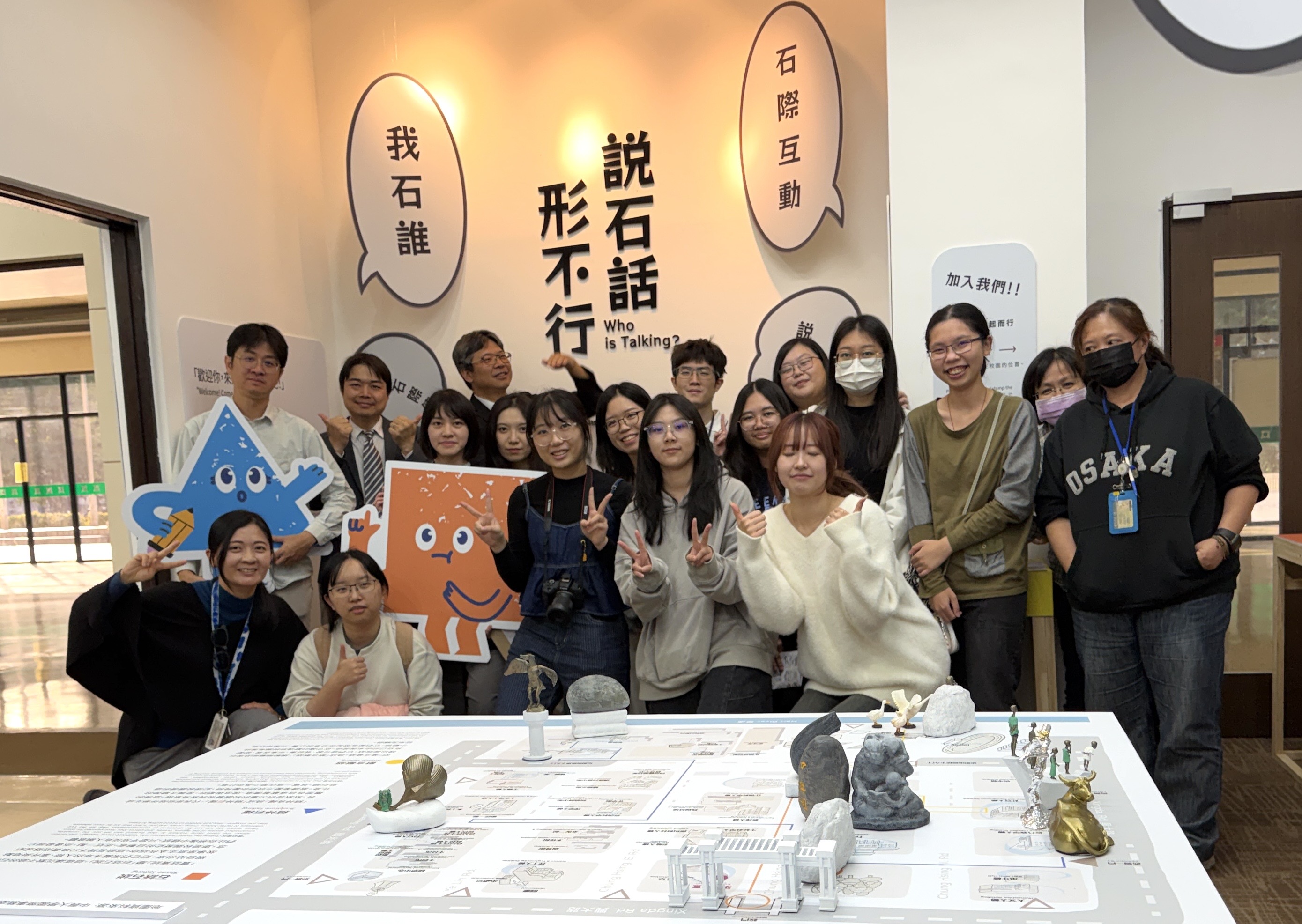 The opening ceremony was attended by Dean Cheng-Hsien Wu of the College of Liberal Arts, Deputy Library Director Yao-Chung Fan, and Professor Kai-Yu Tang, Director of the Graduate Institute of Library and Information Studies. Together, they marked the opening of the exhibition and expressed their recognition of the graduate student curatorial team’s innovative approach to reinterpreting campus cultural heritage. Visitors followed exhibition maps to complete interactive tasks, read the stories behind each exhibit, operate interactive devices, and participate in games, gradually discovering the often-overlooked stone tablets, sculptures, and animal-themed artworks scattered throughout the campus.