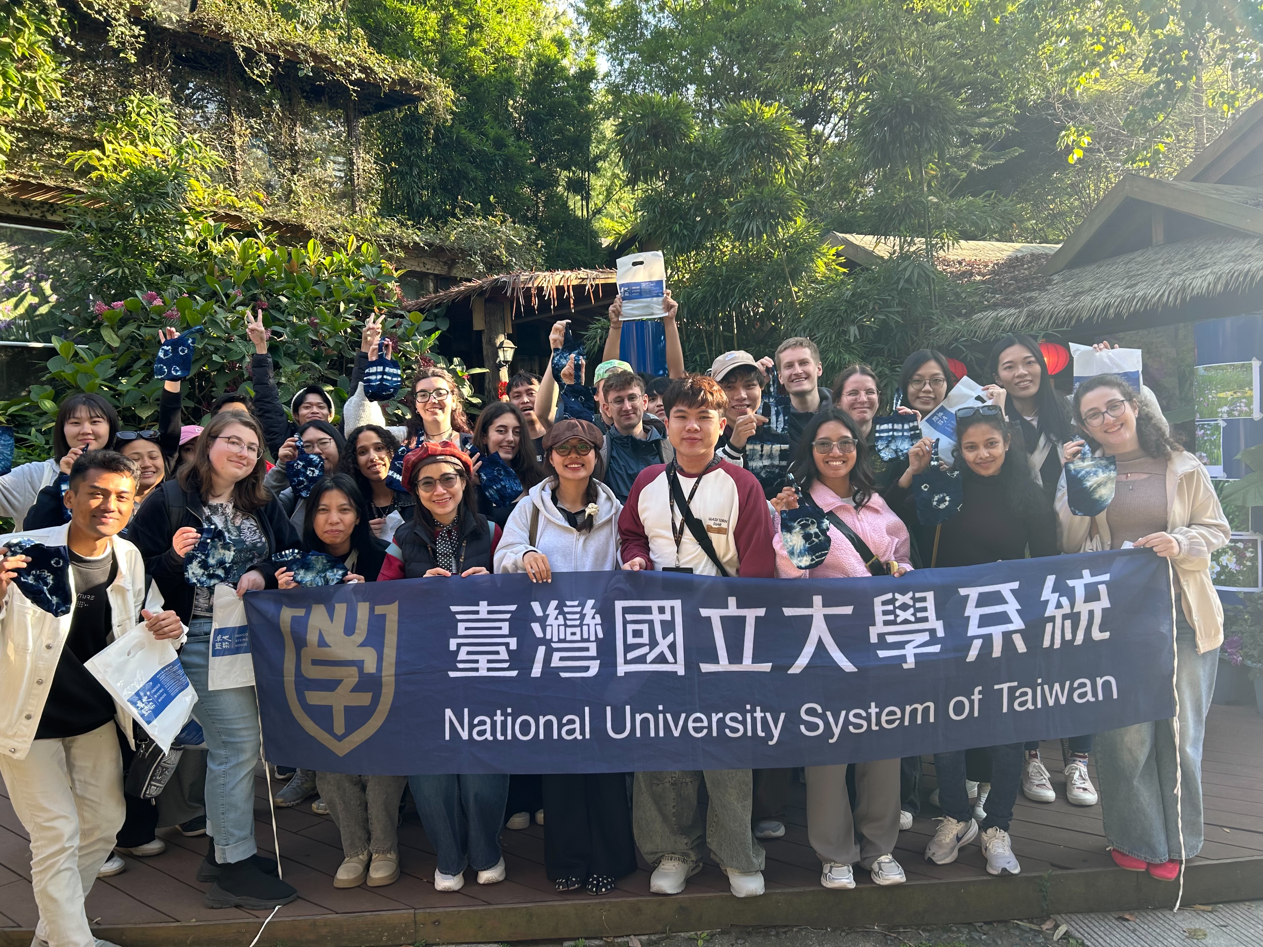In the afternoon, the group traveled to Zhuo Ye Cottage in Sanyi for an indigo dyeing workshop. Indigo dyeing is a symbol of traditional Hakka culture in Taiwan. Using Strobilanthes cusia as the dye source, it was historically used to make durable and practical blue garments that reflected the Hakka people’s hardworking, frugal, and down-to-earth character. Since 2004, Zhuo Ye Cottage, located in the mountainous area of Sanyi, has promoted a natural dyeing workshop by combining plant-based dyeing techniques with contemporary cultural and creative design, developing into a cultural industry site that showcases distinctive Hakka cultural characteristics and refined handcraft aesthetics. Under the guidance of professional instructors, students carried out the processes of tying, dipping, and color development, and completed their own distinctive indigo-dyed works. Through this hands-on experience, they gained a deeper understanding of the cultural value of indigo dyeing, the spirit of craftsmanship, and its connection to local development. After the workshop, students were free to explore the park and further learn how Zhuo Ye Cottage has centered its development on indigo dyeing by gradually integrating indigo cultivation, dye production, craft creation, and experiential activities. Through the combination of park operation, cultural display, and workshop-based learning, the site has developed into a locally distinctive craft space. In addition to learning about Taiwan’s diverse ethnic cultures, students also gained deeper reflection and inspiration regarding cultural preservation and revitalization.
