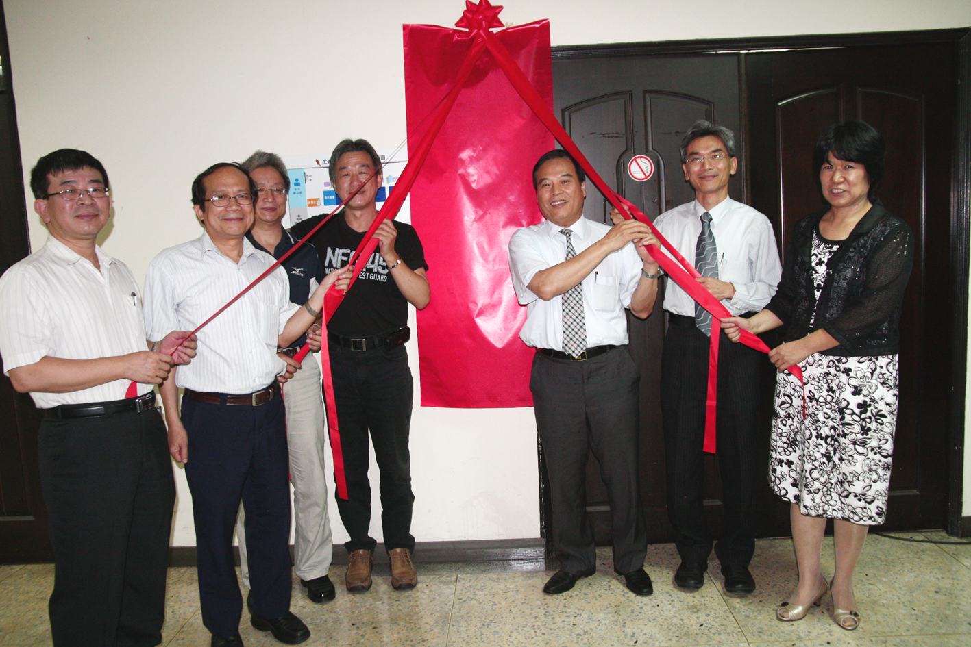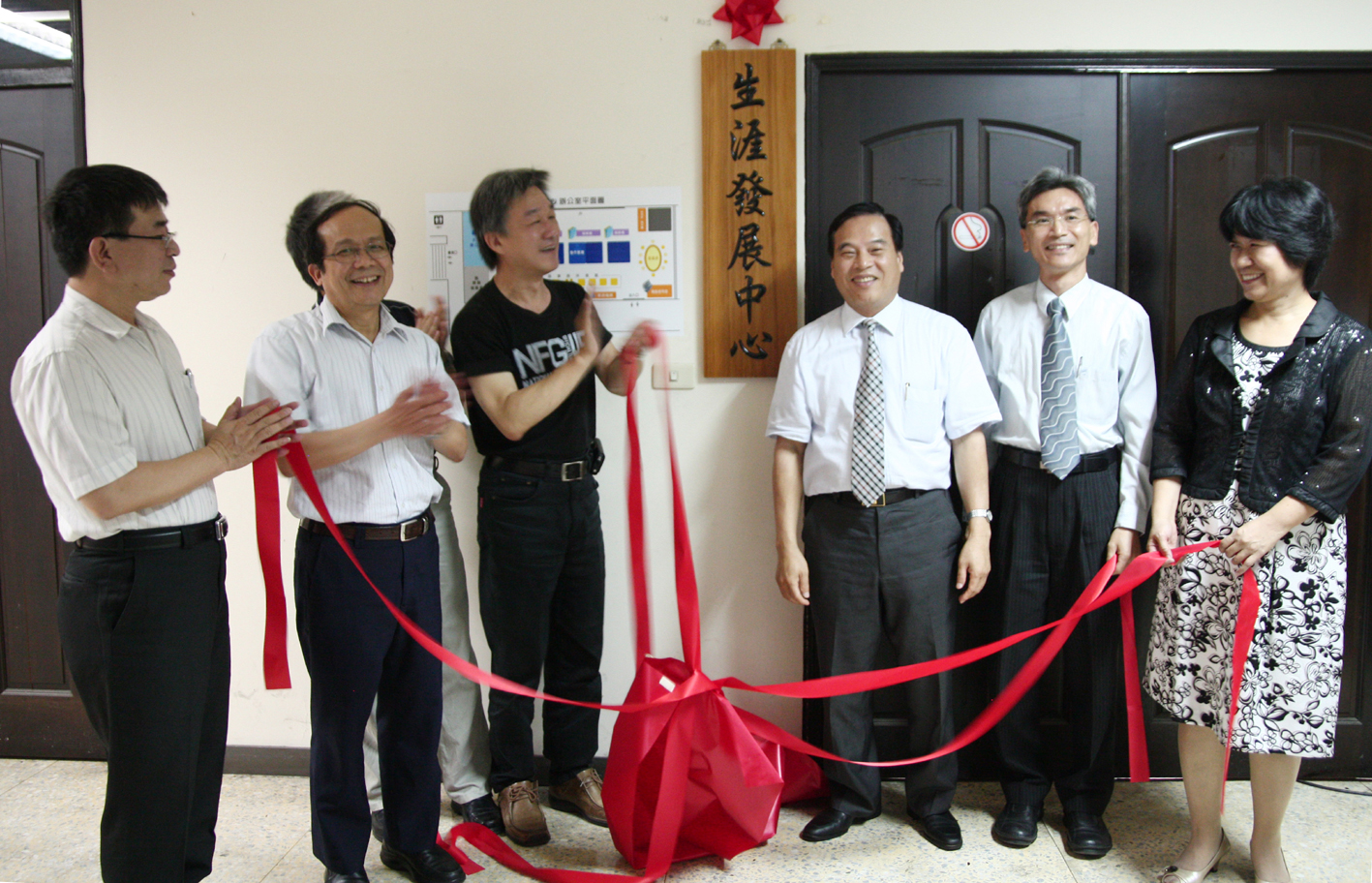 中興大學學務處6月28日上午舉辦生涯發展中心(以下簡稱生發中心)揭牌典禮,由蕭介夫校長、鄭經偉學務長、農資學院黃振文院長、工學院薛富盛院長、生發中心何素鵬主任、獸醫教學醫院李衛民院長、生物醫學研究所陳健尉所長共同揭牌。