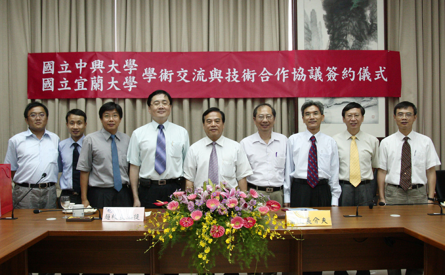 - 相關附件 興大校長蕭介夫(右)與宜大校長趙涵捷代表兩校簽署合作協議.jpg 、 興大校長蕭介夫(左5)與宜大校長趙涵捷(左4)代表兩校簽署合作協議.jpg