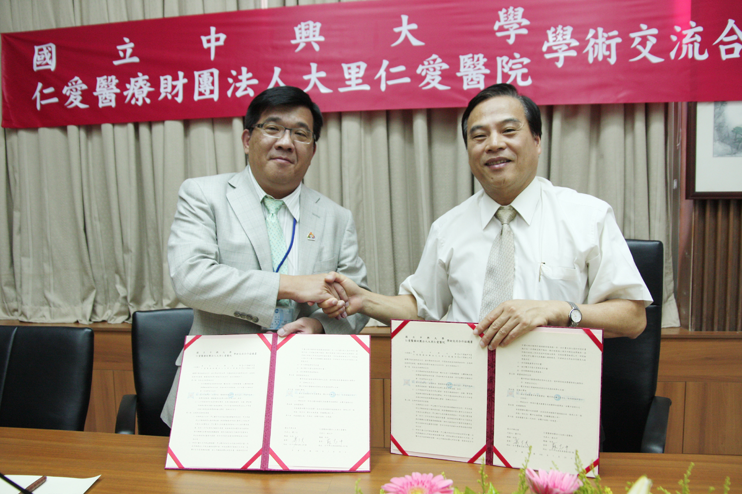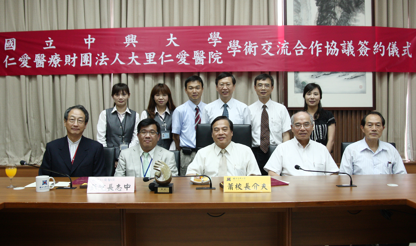 - 相關附件 興大校長蕭介夫(右)與大里仁愛醫院院長蘇志中代表雙方簽約.jpg 、 1000720大里仁愛醫院簽約 019.jpg