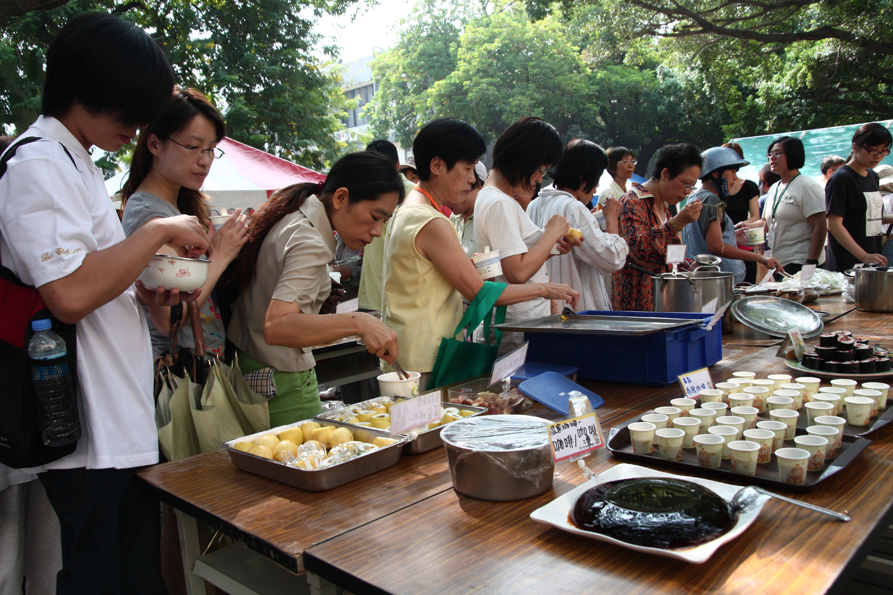 國 立中興大學有機農夫市集成立四週年!17日上午農夫市集舉辦週年慶祝活動,由農場媽媽及興大山地服務社以迎賓舞開場,現場並佈置時光走廊回顧市集四年來的發展點滴,同時21間農場提供7-9折的農產品折扣,以及有機私房菜試吃,吸引上百位社區民眾走進市集選購有機農產品,便宜撿好康。