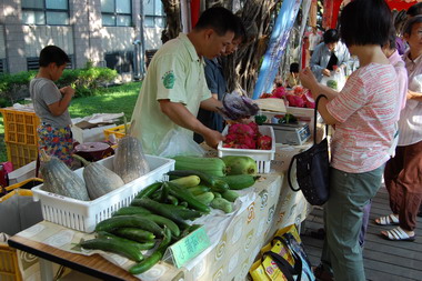 來一趙興大有機農夫市集,現採蔬菜、當季水果、茶葉、米、咖啡等各式農產品都有,特別是有些農產品是由產地採收後,直接運輸到現場,減少中間的物流與包裝程序,因此產品保證最新鮮。 農夫市集不乏有些是固定的老顧客,有的利用晨起運動之後,順便逛市集將蔬果購買回家,有住在屯區的一位顧客是每週固定的常客,他專程開車來買,常年都如此。