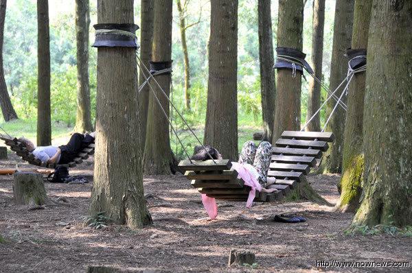 ▲在林間小憇別忘了披件外套。(記者田欣雲攝影) |