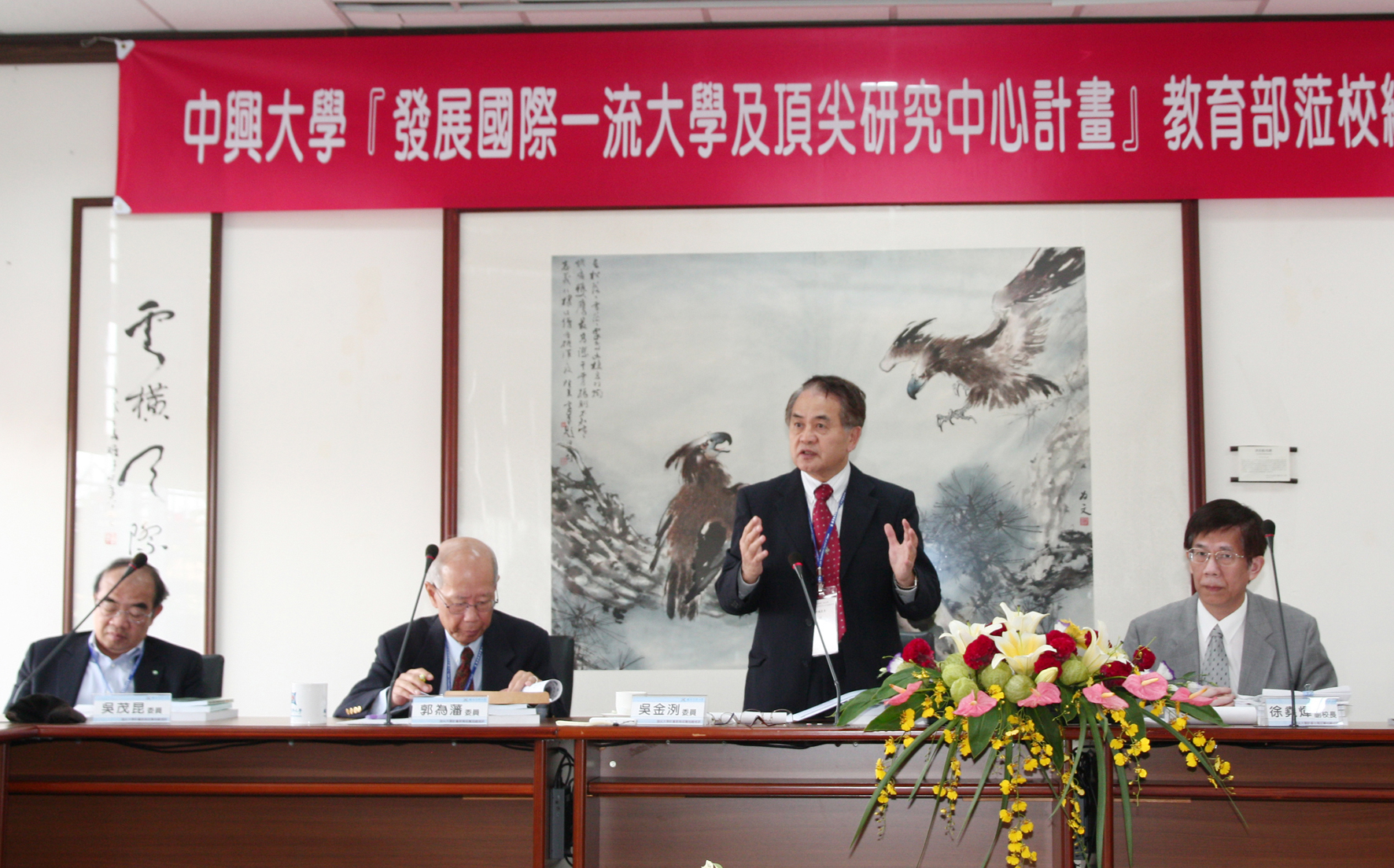 教育部頂尖計畫訪評會議,由訪評小組召集人吳金洌教授(右二)與本校徐堯煇副校長(右一)共同主持。