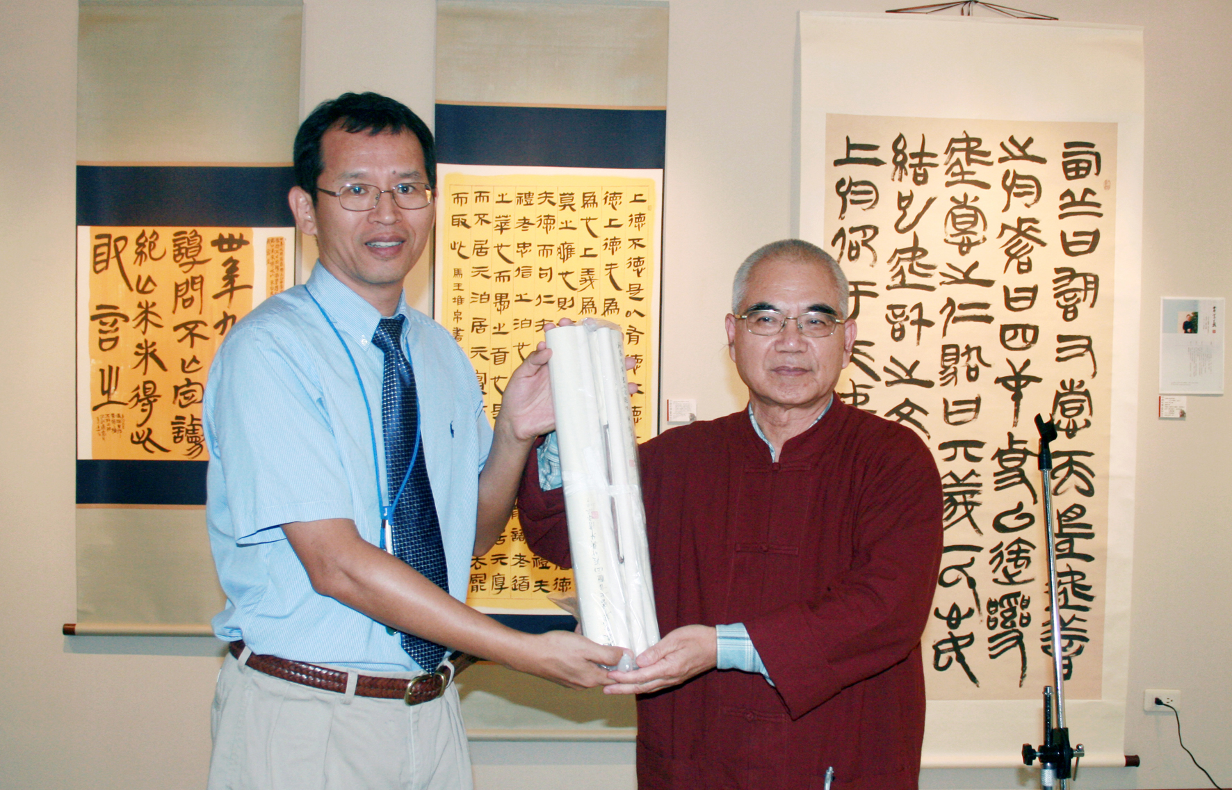 - 相關附件 「換鵝會書法展」展出百件名家作品.jpg 、 施春茂會長代表書會捐贈畫作給興大.jpg