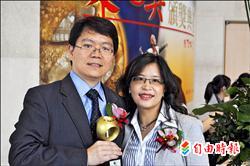 東元獎得主中興大學研發長陳全木與妻子大葉大學研發長陳小玲(記者劉力仁攝) |