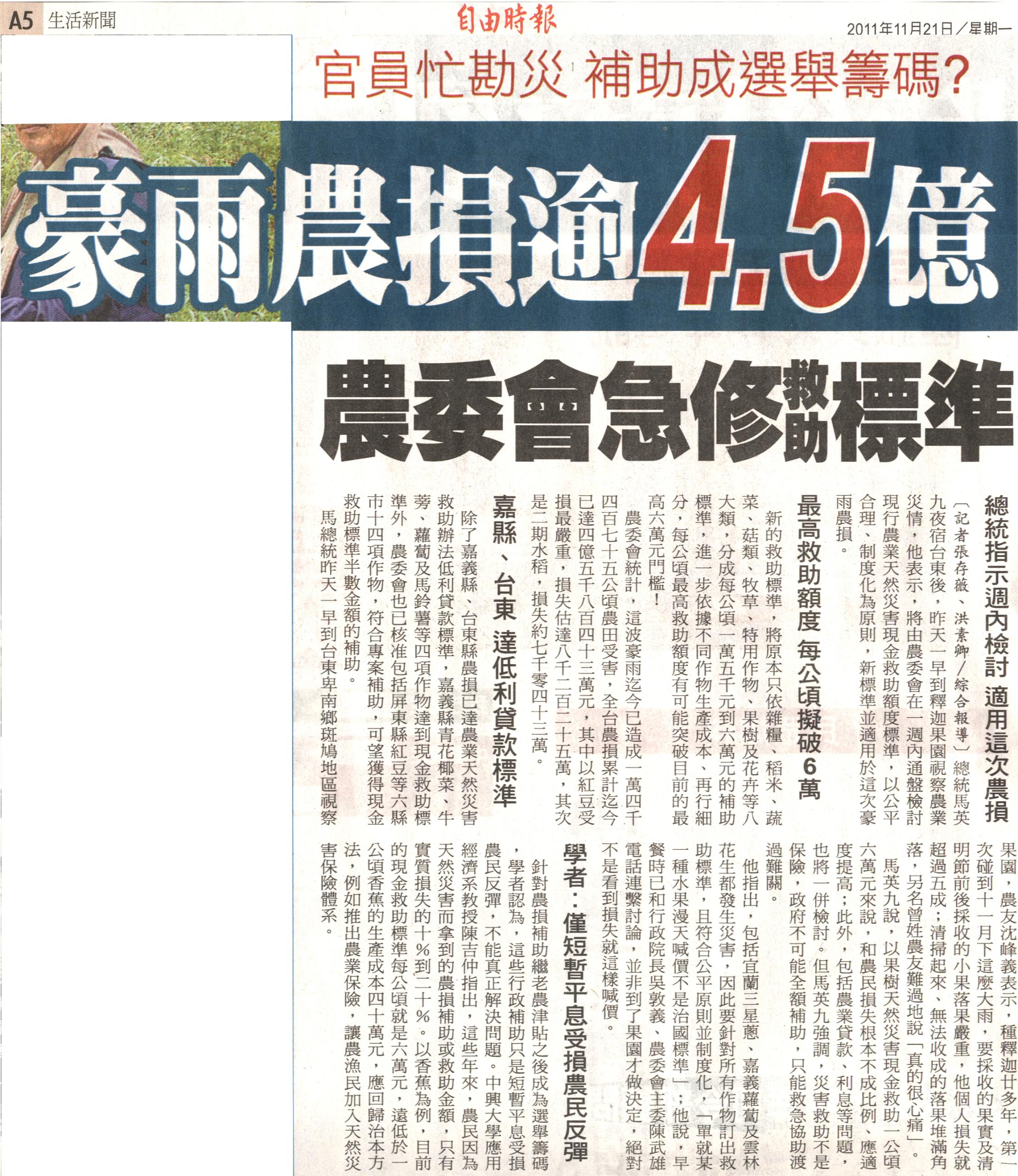 總統指示週內檢討 適用這次農損