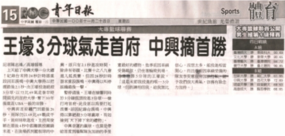 上天給了中興大學一分大禮!紀錄台未將24秒計時器重設因而誤鳴,中興大學得以把握最後2.1秒,由王壕投進絕殺3分球,以72比69氣走泰半時間領先的首府大學,奪下10年後重返UBA一級的首勝。中興與首府纏鬥到最後26秒,兩隊仍以69比69戰成平手,首府持球進攻,主控周俊穎在最後4秒中距離跳投涮鍋未進,在後場抓到籃板球的中興,原只有2.1秒進攻時間,除非有奇蹟,比賽十之八九會進入延長賽,但因24秒計時器未重設誤鳴,中興得以叫停組織最後一擊。 暫停過後,王壕在槍響同時於3分線弧頂投進3分球,一槍打垮首府。此役原以為要打延長賽,卻因紀錄台誤鳴,中興得以靠絕殺3分球贏球,有如撿到「天下掉下來的禮物」。