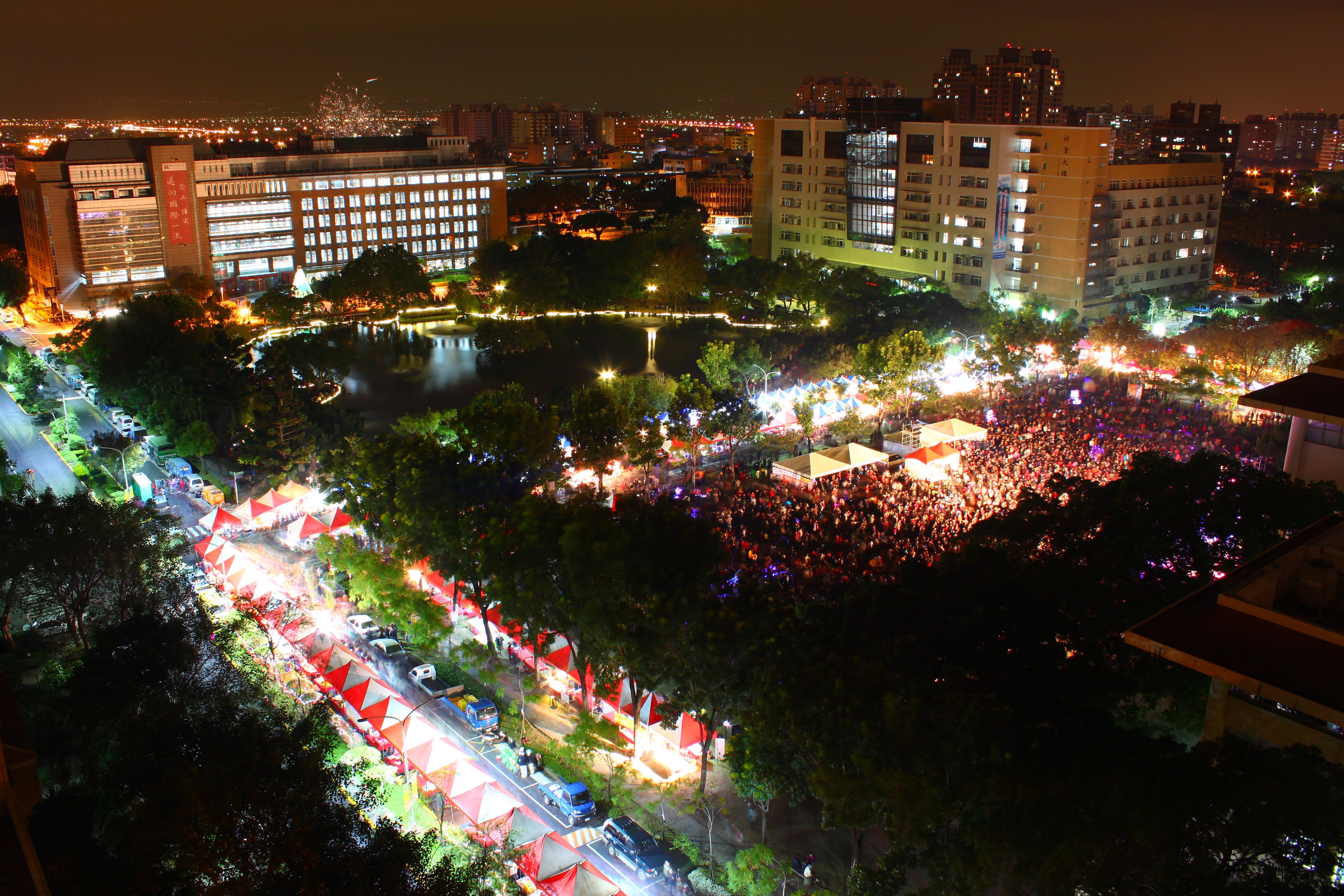 興大跨年系列活動包含園遊會、興大年度漢字揭榜以及表演晚會,下午3點近百個園遊攤位開始擺攤,柳丁、蕃茄、葡萄、棗子等農特產品,烤玉米、雞肉串、花枝丸、烤地瓜等台灣小吃供民眾選購,興大僑生聯誼會也準備了馬來西亞、印尼和港澳等地方美食現場販售。