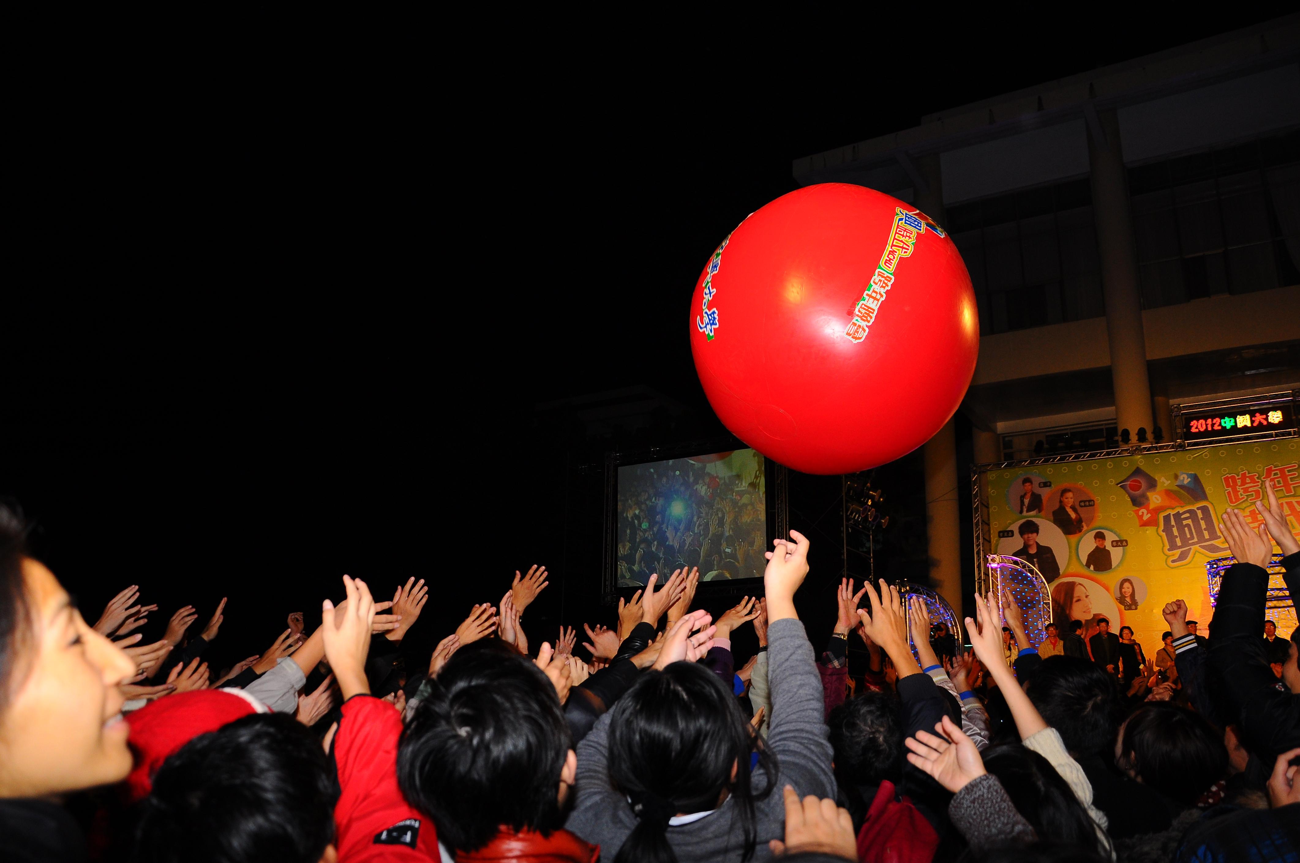 越接近倒數時間觀眾情緒越漸沸騰,倒數前10分鐘,眾人一起滾動祈福興球,共同期許來年福氣財運滾滾來。興大校長李德財特別說出他的101年新年新希望,期許興大成為帶領中台灣學術、文化與產業發展的重要推手,讓興大成為中台灣創新樂活的101新地標。