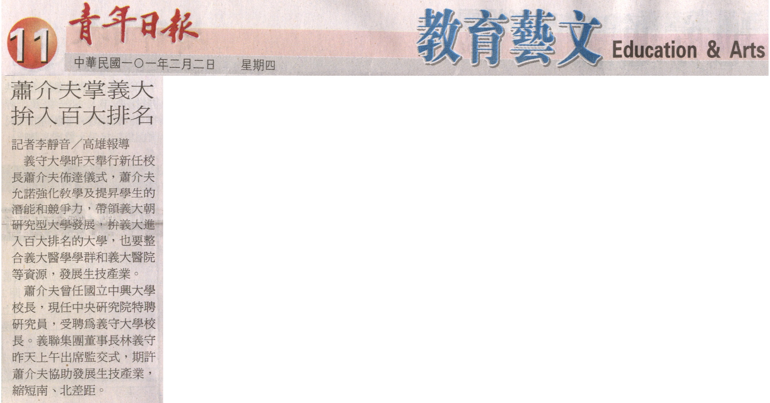 【媒體報導】蕭介夫掌義大 拚入百大排名