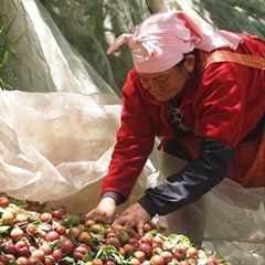 《上下游新聞市集》契作高雄梅山的紅肉李,製成有機果乾在網路銷售。 |