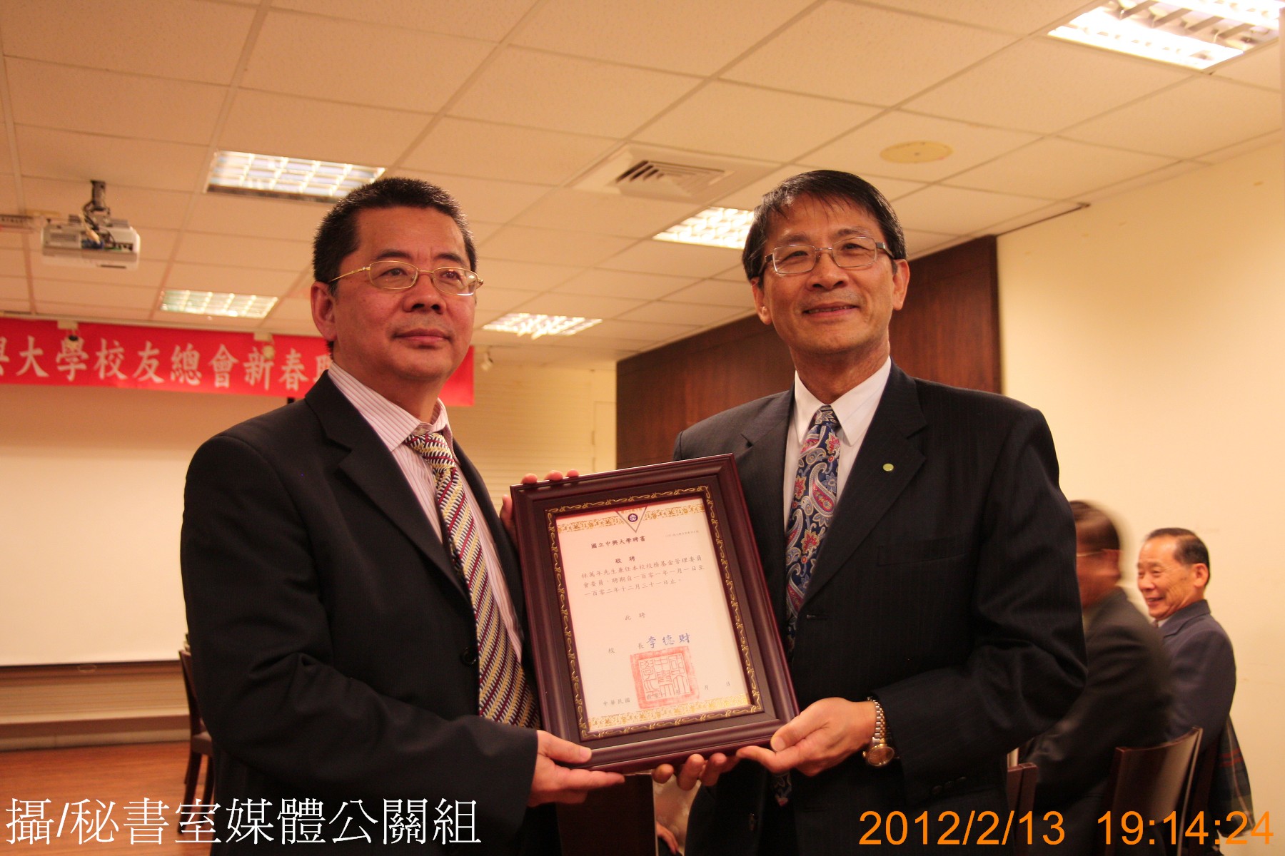 晚會中,由林萬年理事長頒發聘書與榮譽理事長、副理事長、常務理事、理事、監事會召集人、常務監事、監事及顧問等人;並由李德財校長致頒校務基金管理委員會委員聘書給校友總會林萬年理事長及柯興樹榮譽理事長,希望校務基金管理委員會在兩位專業人士的協助之下,能更有效管理校務基金之收支、保管及運用。