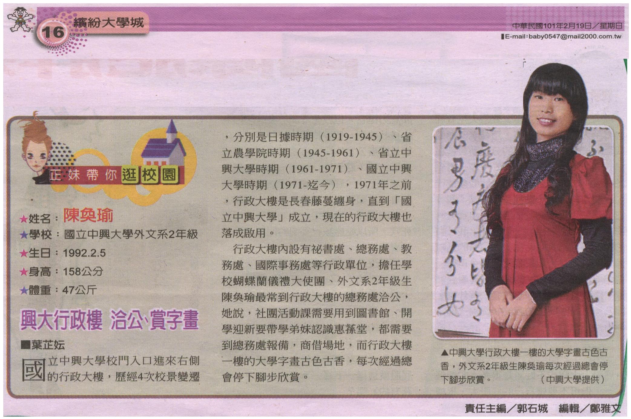 行政大樓內設有祕書處、總務處、教務處、國際事務處等行政單位,擔任學校蝴蝶蘭儀禮大使團、外文系2年級生陳奐瑜最常到行政大樓的總務處洽公,她說,社團活動課需要用到圖書館、開學迎新要帶學弟妹認識惠蓀堂,都需要到總務處報備,商借場地,而行政大樓一樓的大學字畫古色古香,每次經過總會停下腳步欣賞。