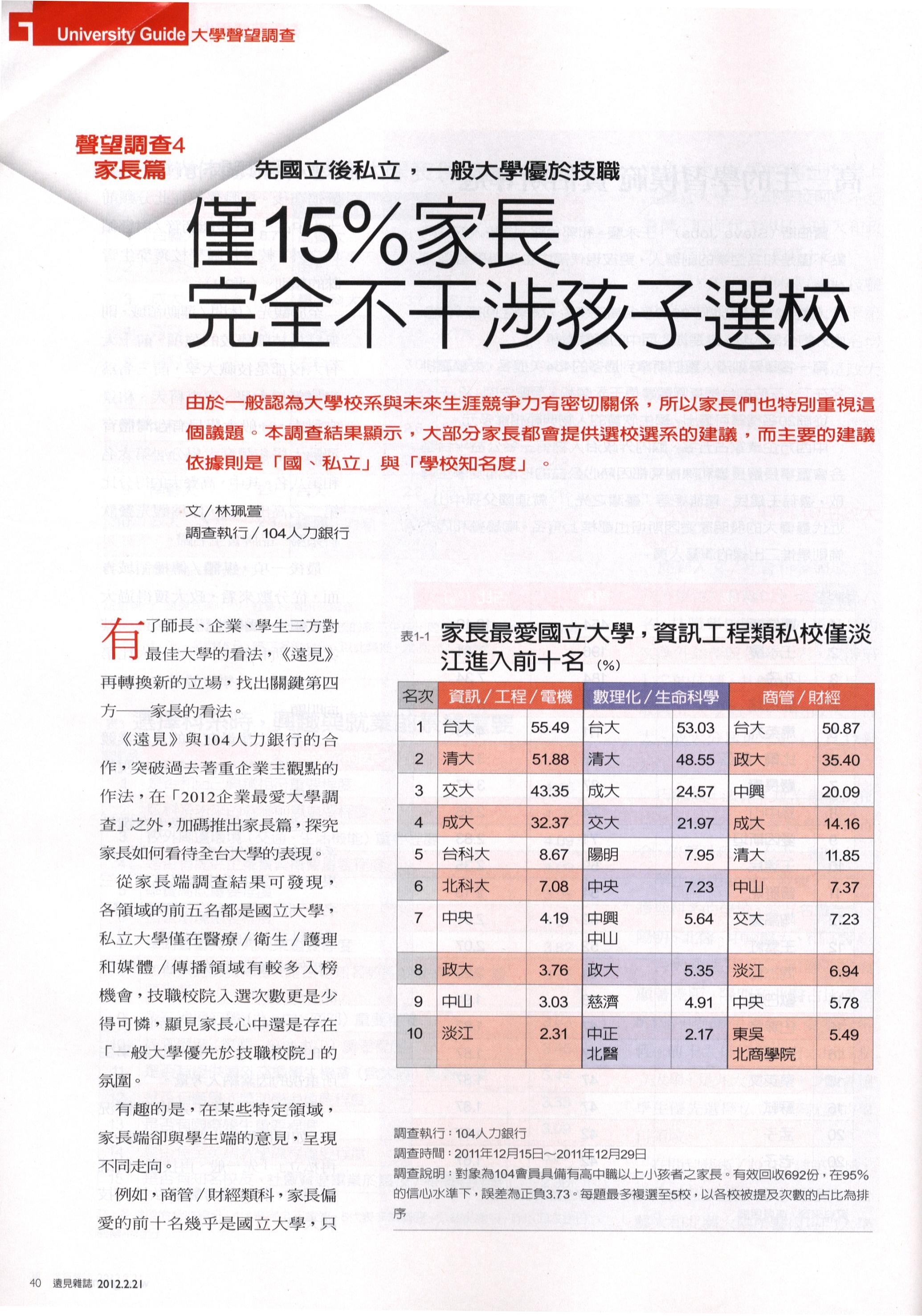 【媒體報導】大學聲望調查