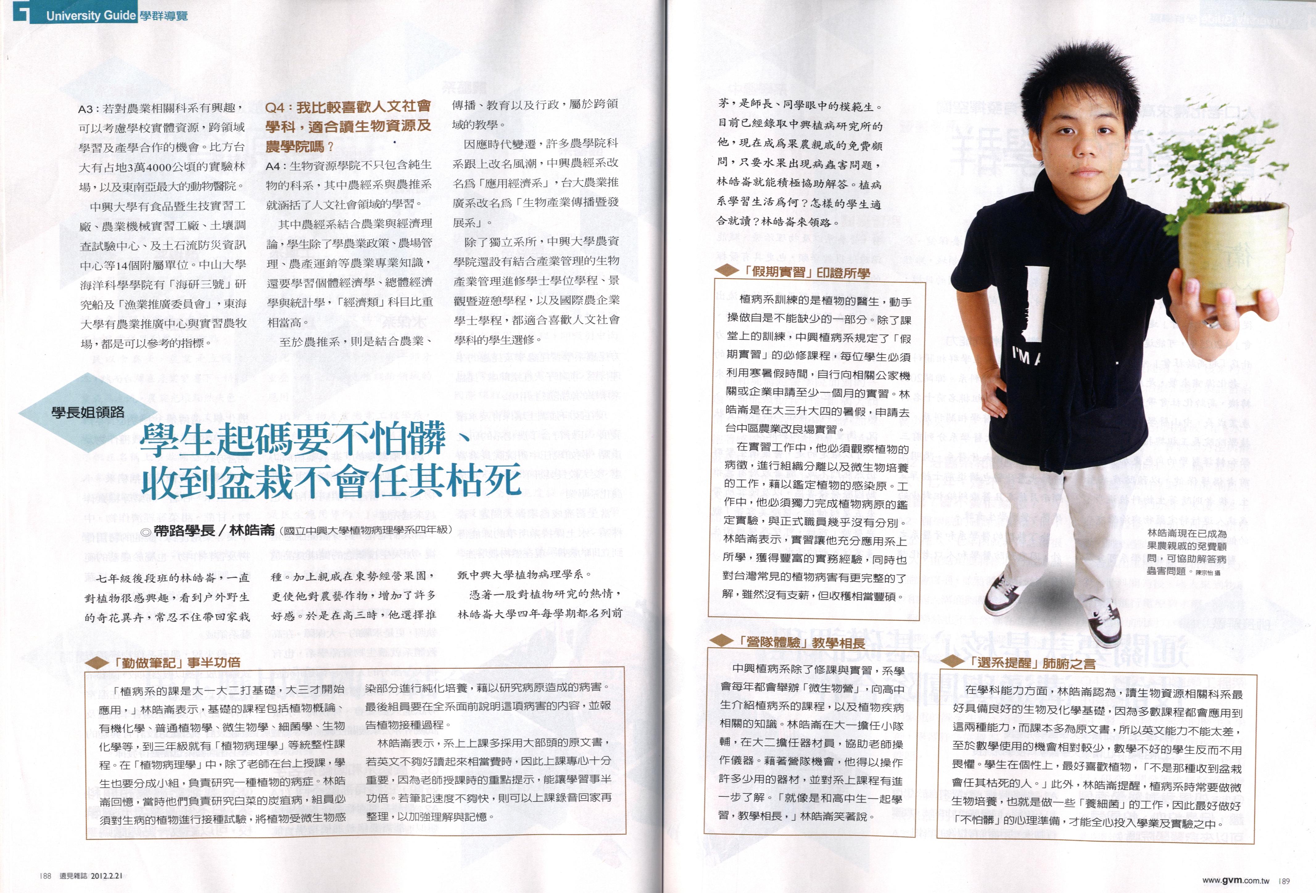 【媒體報導】學群導覽-生物資源學群