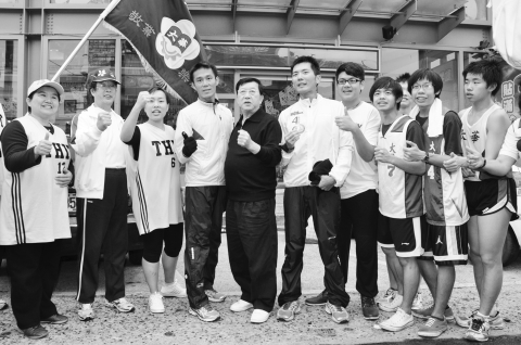 新竹縣長邱鏡淳在竹北市中華路為「希望妳在 為妳而跑 」路跑活動,加油打氣。 |