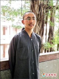 就讀於台南二中的出家僧學生謝建璿,繁星錄取中興大學生命科學系。 |