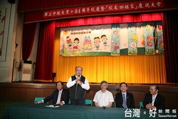 胡市長也以校友身分「回娘家」,附小小朋友見著市長到來,通通擠進窄小的活動中心特意來「看」市長,胡市長也開心地向「小學弟、小學妹」打招呼,他打趣地說:「小朋友可能很難相信我們也曾經念過小學!」全場一陣笑意。