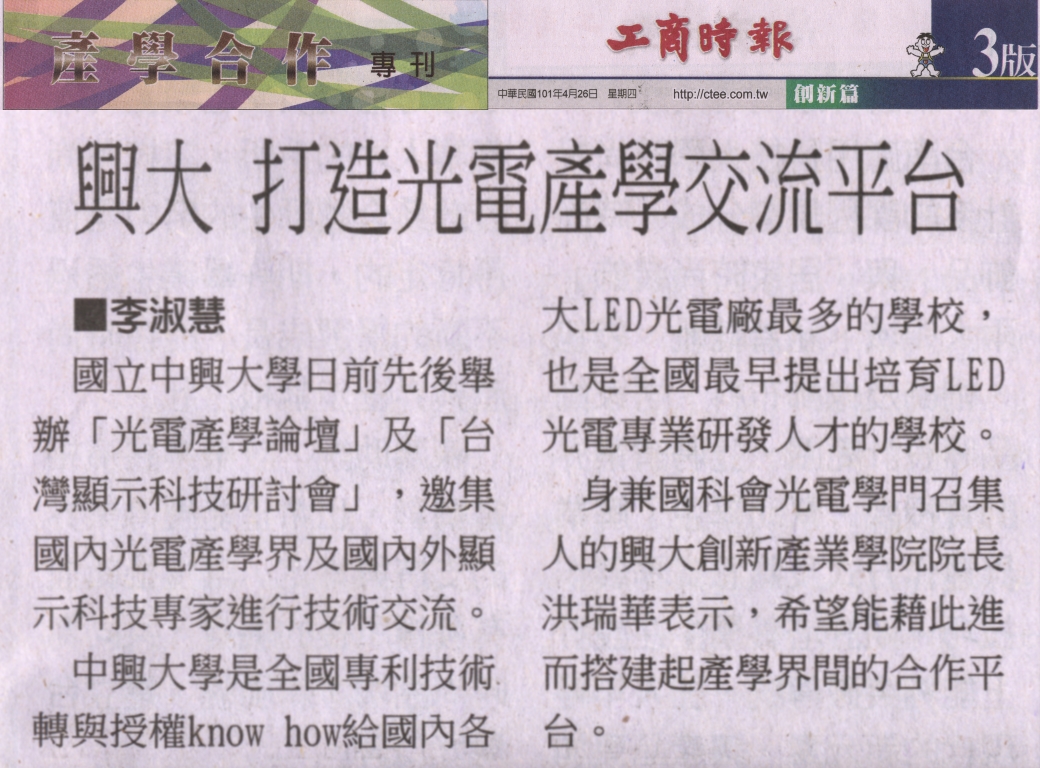 國立中興大學日前先後舉辦「光電產學論壇」及「台灣顯示科技研討會」,邀集國內光電產學界及國內外顯示科技專家進行技術交流。