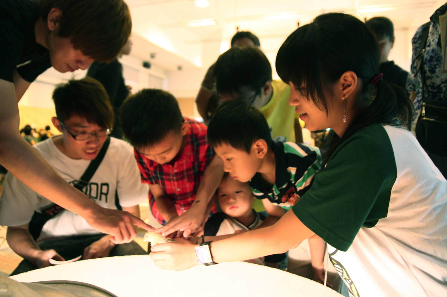 興大動科系學生教小朋友觀察蛋黃與蛋白,判別雞蛋的新鮮度![]() 興大「絕對雞密」展示搭設小雞棚,讓參觀小朋友爭相觸摸小雞 |