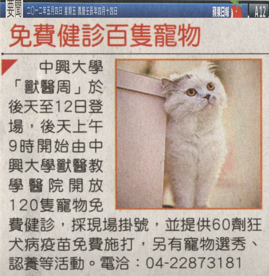 【媒體報導】免費健診百隻寵物