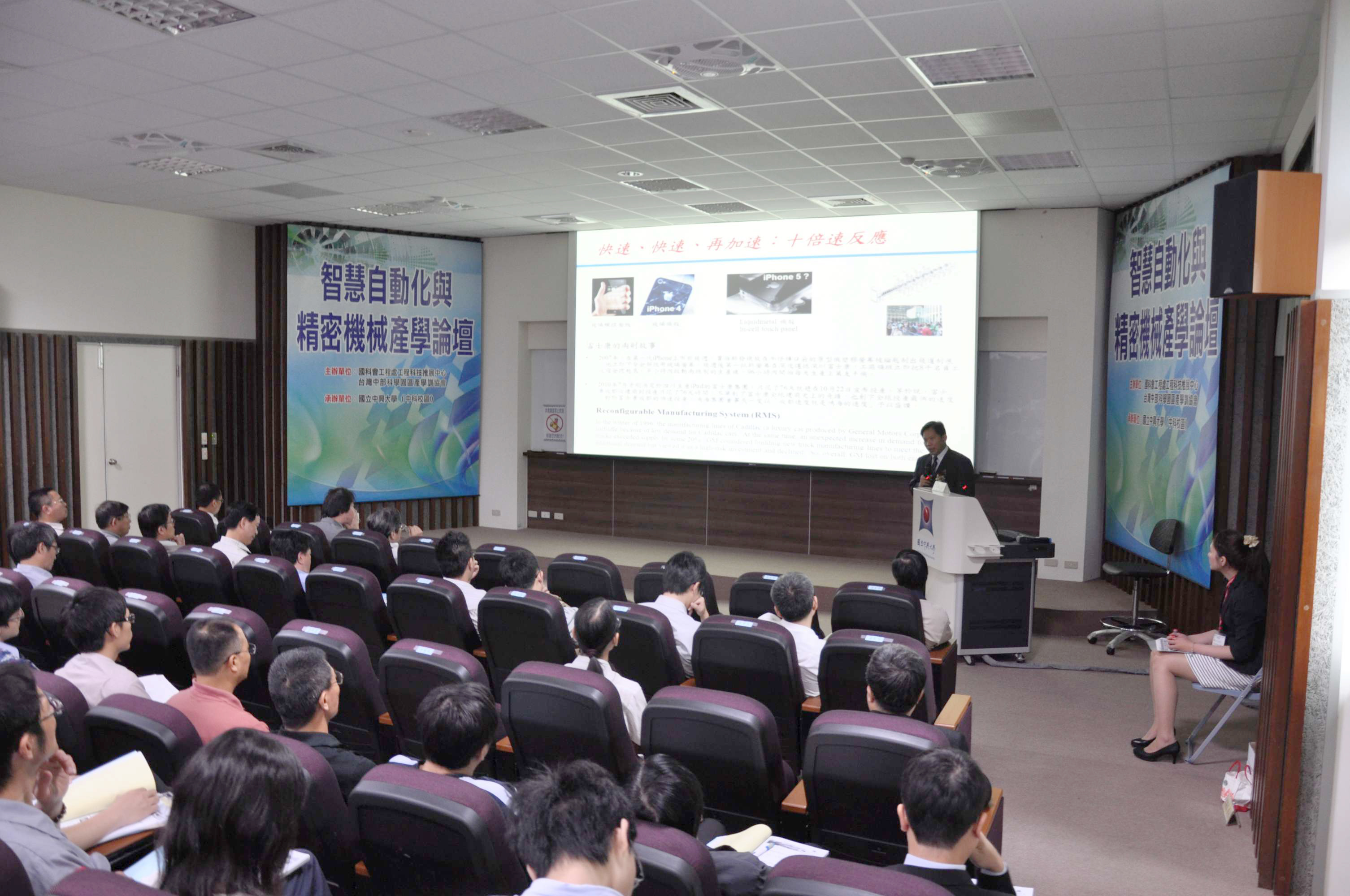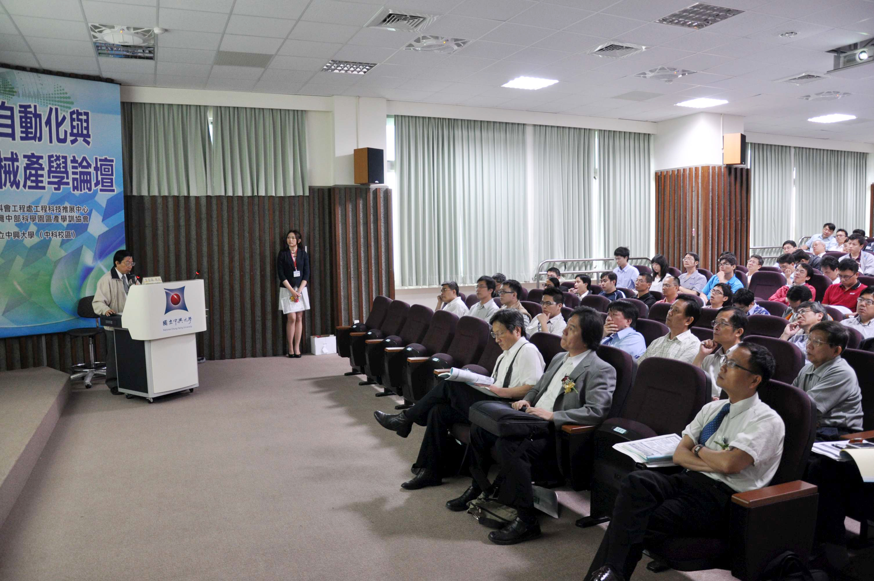 國立中興大學5月4日在興大中科校區舉辦「智慧自動化與精密機械產學論壇」,邀請興大、成大、台大、勤益科大、上銀科技等產學界專家,針對數位化CNC工具機系統動態模擬技術、智慧型機人技術發展趨勢、機器在智慧自動化產業的應用等主題進行技術交流,,中部各大精密機械大廠皆派員出席,參與人數約140名。