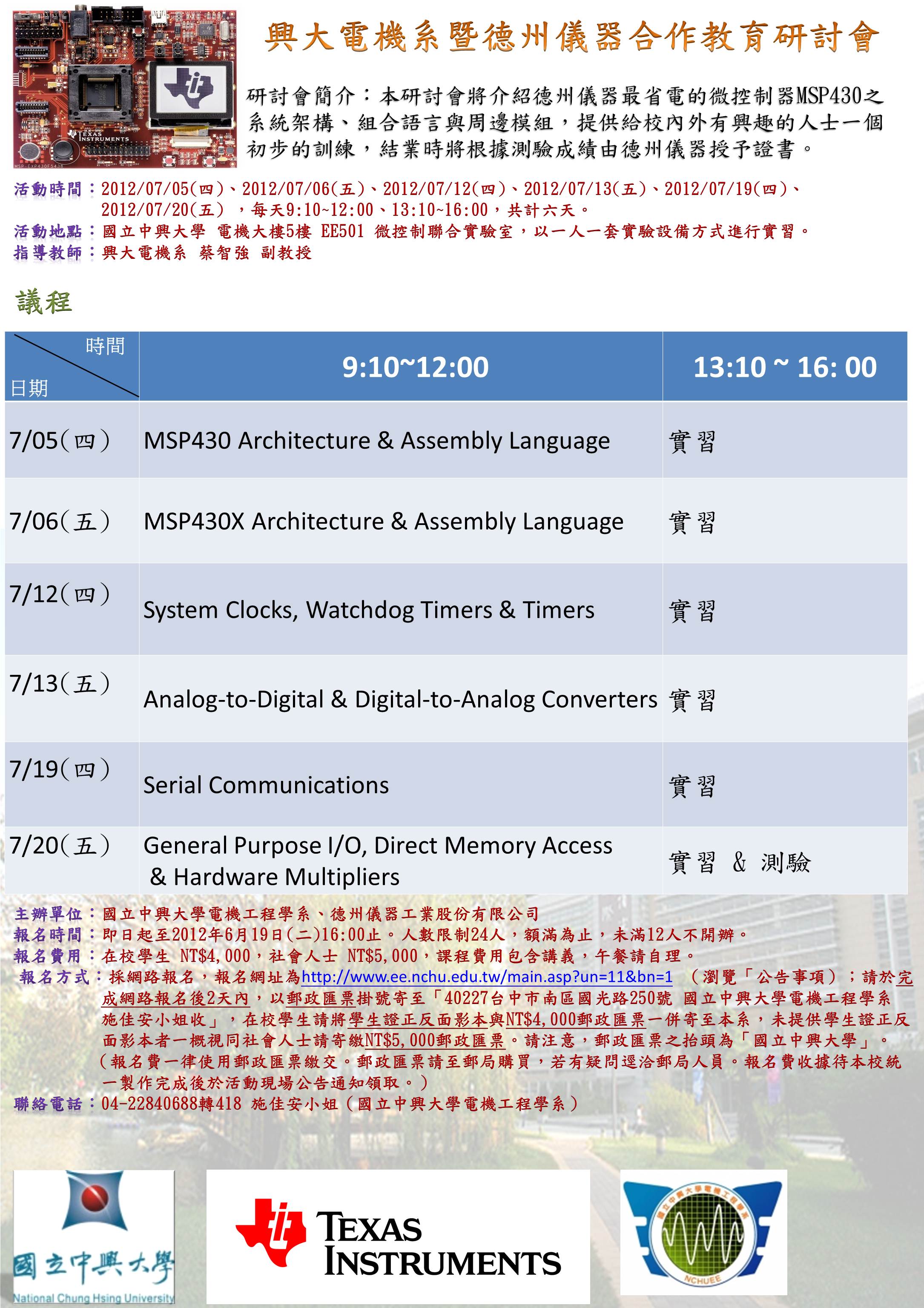 - 相關附件 海報_20120705-20120720興大電機系暨德州儀器合作教育研討會 20120518.jpg