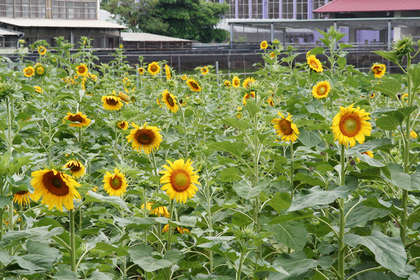 國立中興大學校園內,最近出現一片向日葵花田,一片黃澄澄的豔麗景象令民眾驚艷,且引發熱烈討論,校方表示,其實這是校內農藝系學生的點子,為了推廣農藝周活動,不僅提前在校內游泳池旁栽種200多株的向日葵花田,另外,展覽期間還在會場直接佈置了20株特殊品種茶花以及4棵咖啡樹,向民眾展現興大農藝系學生的研究內容。
