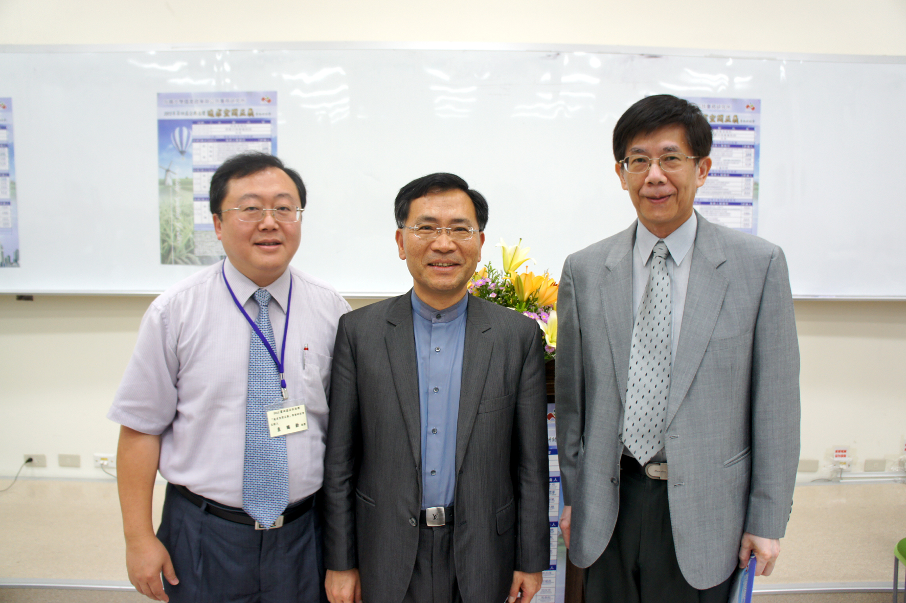 ![]() 右至左分別為興大徐堯煇副校長、中市蔡炳坤副市長、興大國務所教授袁鶴齡 |