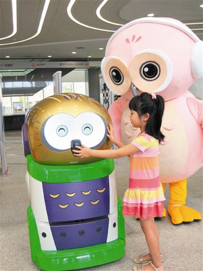 全國第一座國家級數位資訊圖書館昨天開幕,該館試營運二周,已有十萬人次入館,造型可愛的貓頭鷹機器人可將讀者歸還的書籍送到藏書區,也會說話、會走路,是國人自行研發、製作的機器人。