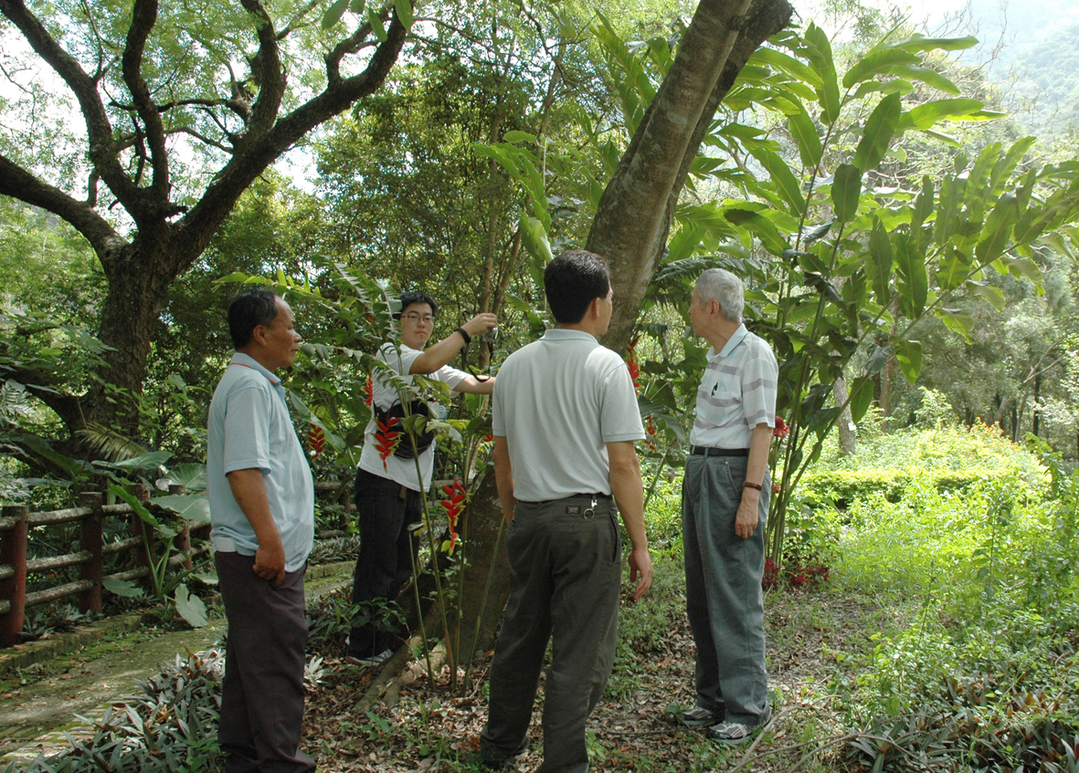 ![]() 樹木專家黃彥三(右1)教導惠蓀林場員工進行樹木體檢 |