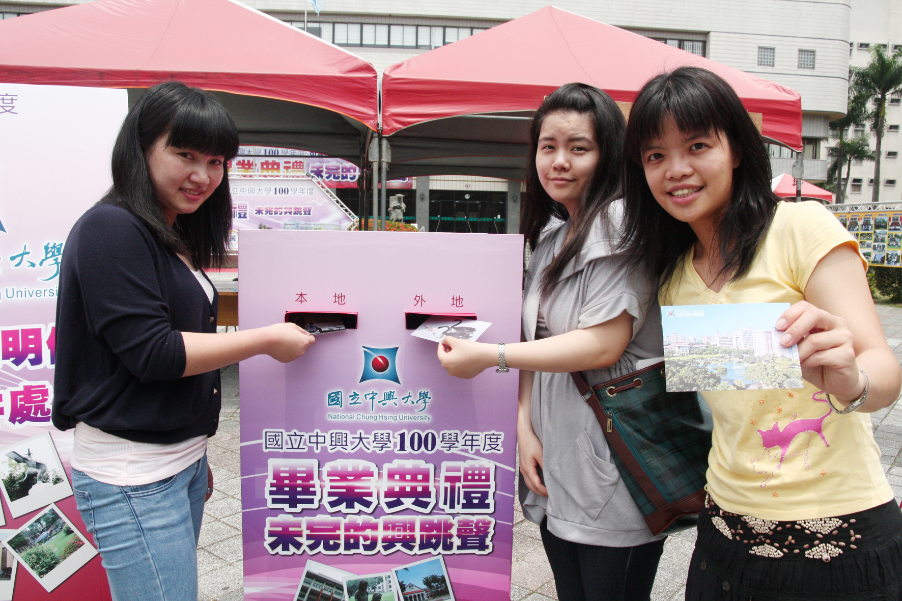 寄一封信給未來的自己!國立中興大學學務處本週(5日至8日)舉辦「畢業回憶明信片」活動,免費提供6000張明信片供應屆畢業生索取,畢業生可在明信片上寫下給自己的期許,投進校方準備的郵筒,一年後,學校將替畢業生寄出這封給自己的信。