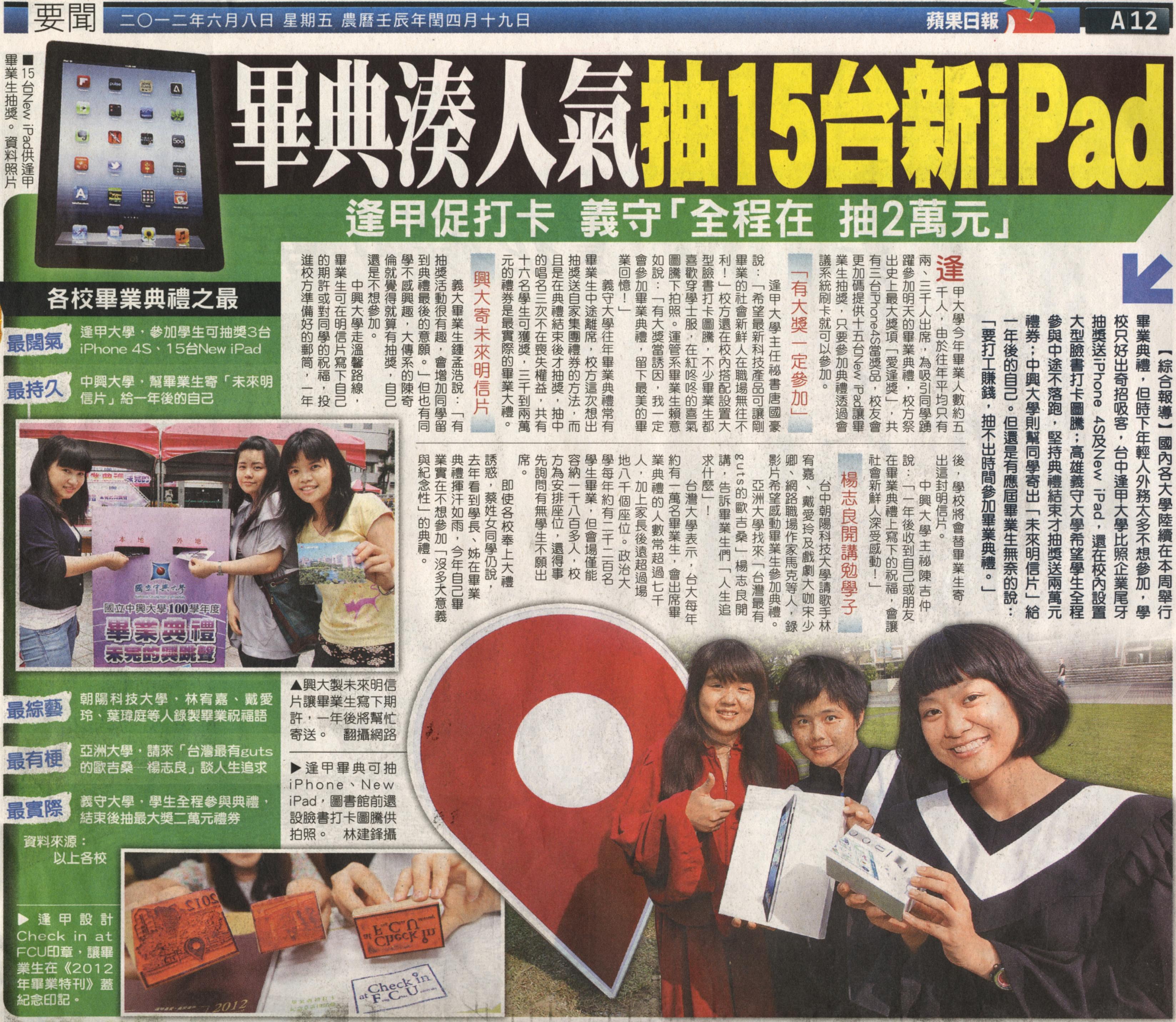 【媒體報導】畢典湊人氣 抽15台新iPad