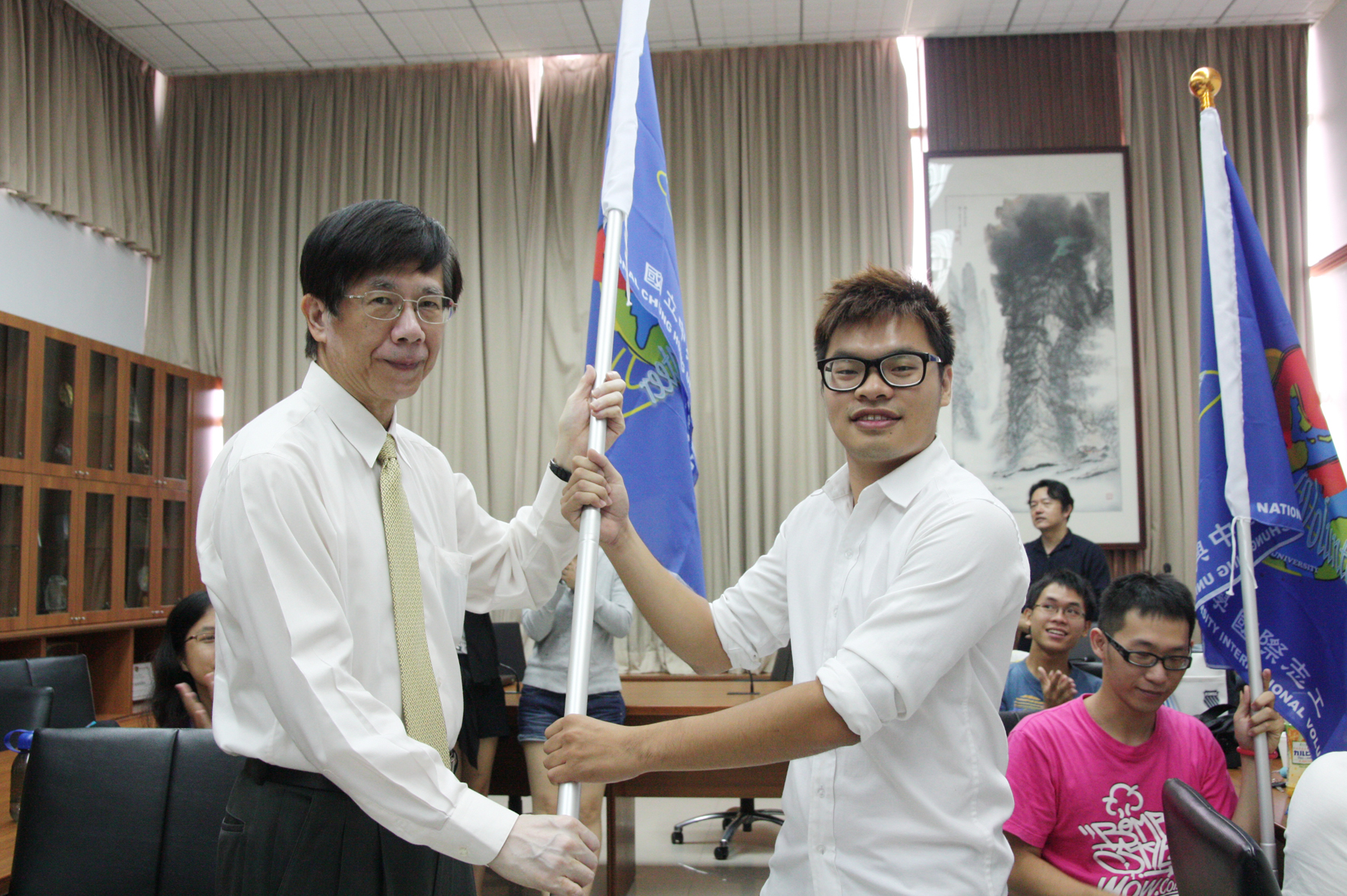 ![]() 興大首批國際志工將於署假至菲律賓及尼泊爾服務,28日舉辦授旗誓師 ![]() 興大副校長徐堯煇(左)授旗給尼泊爾志工團隊長黎凱允 ![]() 興大副校長徐堯煇(左)授旗給菲律賓志工團隊長王健宇 |