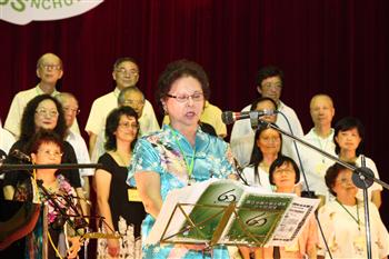 參與演出的團員中有17對夫妻檔,演唱「我的一顆心」,興大校長李德財(後排左二)及其夫人(前排左三)也一同參與演唱