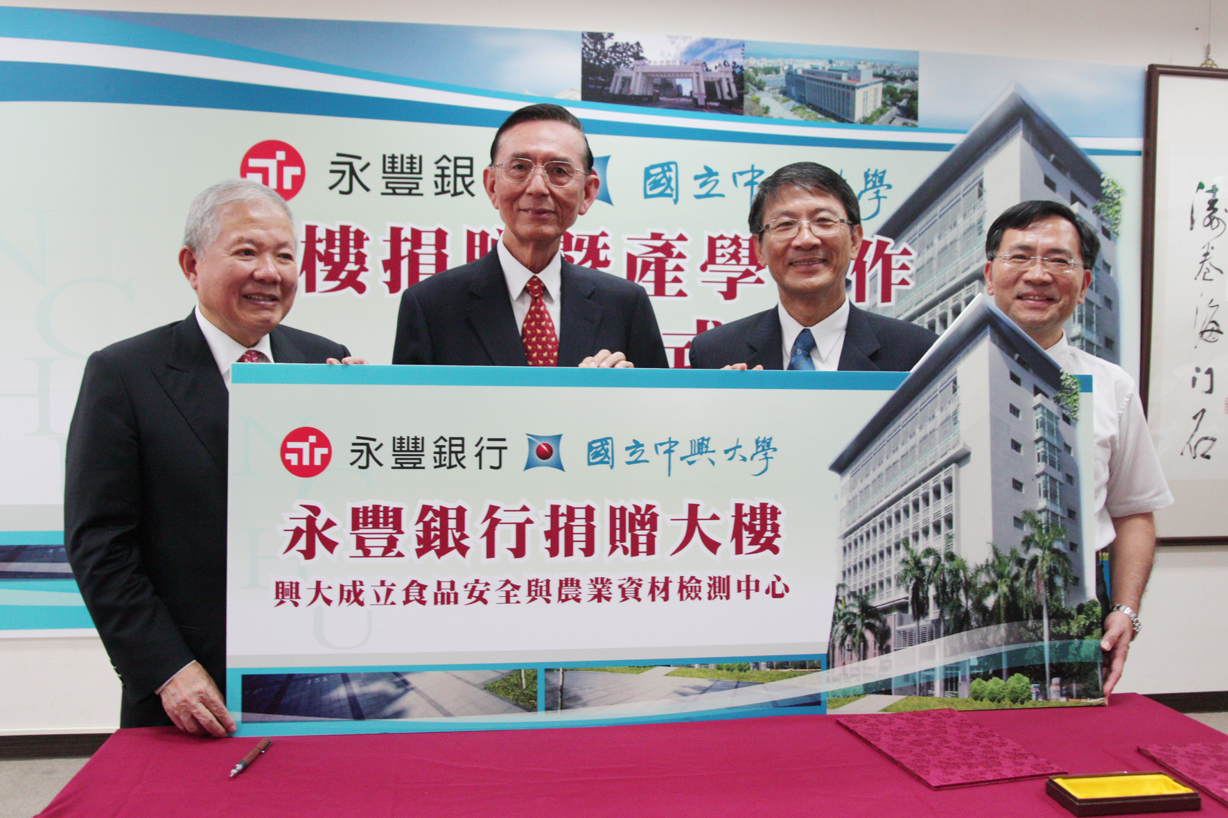 興大校長李德財表示,這是學校首次接受企業界實體捐贈,中興大學具有農業生物科技全國頂尖的優勢,除擁有傑出的研究實力,也實際應用到各項農業推廣服務,目前已設有土壤調查試驗中心、農產品農藥殘留檢測中心、農產品驗證中心等單位,提供土壤、水及肥料檢測分析、農產品農藥殘留檢測、有機農糧產品驗證及產銷履歷驗證等攸關農產品與食品安全的檢測、驗證服務。永豐銀捐贈的大樓落成後,將打造國內第一所功能齊全且技術領先的農產品與食品檢測中心。