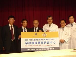 由榮興基金會董事長王丹江、中興大學校長李德財、臺中榮總院長李三剛等人,8月1日在臺中榮總研究大樓為榮興轉譯醫學研究中心成立出席記者會。該中心將設立於興大校內,營運經費由榮興基金會捐助。
