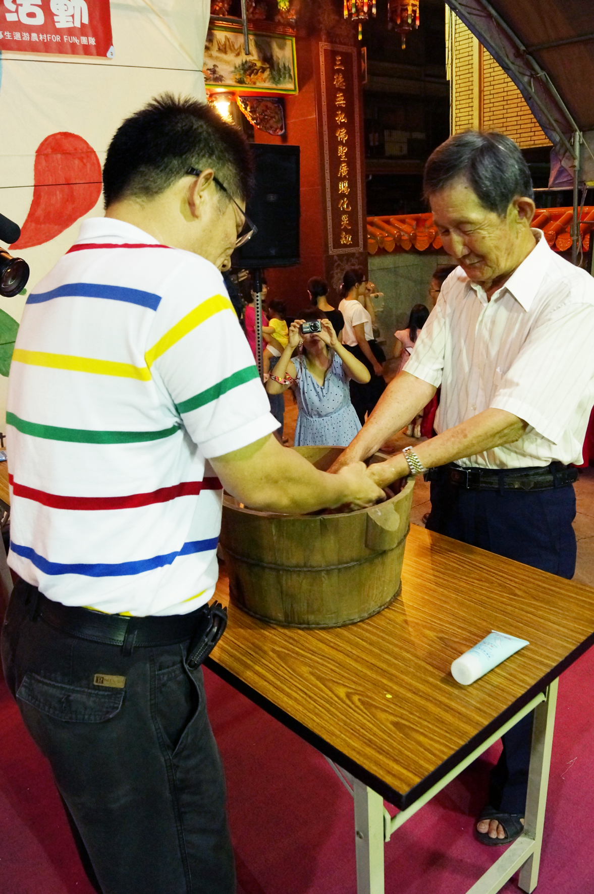 【圖文/園藝系提供】彰化縣永靖鄉四芳社區盛產荖葉,村民們共同的特徵是大姆指留有長而黑的指甲,那是荖葉的汁液長年累積下的痕跡。父親節前夕,4日晚間中興大學園藝系與四芳社區發展協會聯合舉辦「牽洗百代—四芳八八節活動」,由子女替父親洗手,藉此感恩父母的辛勞,計有50對父子、祖孫報名參加。