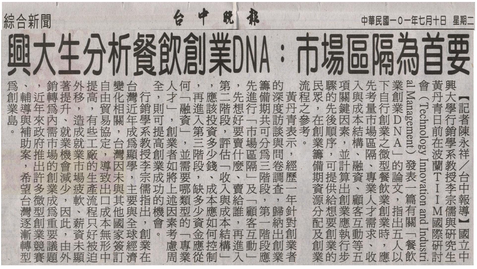 【媒體報導】興大生分析餐飲創業DNA:市場區隔為首要
