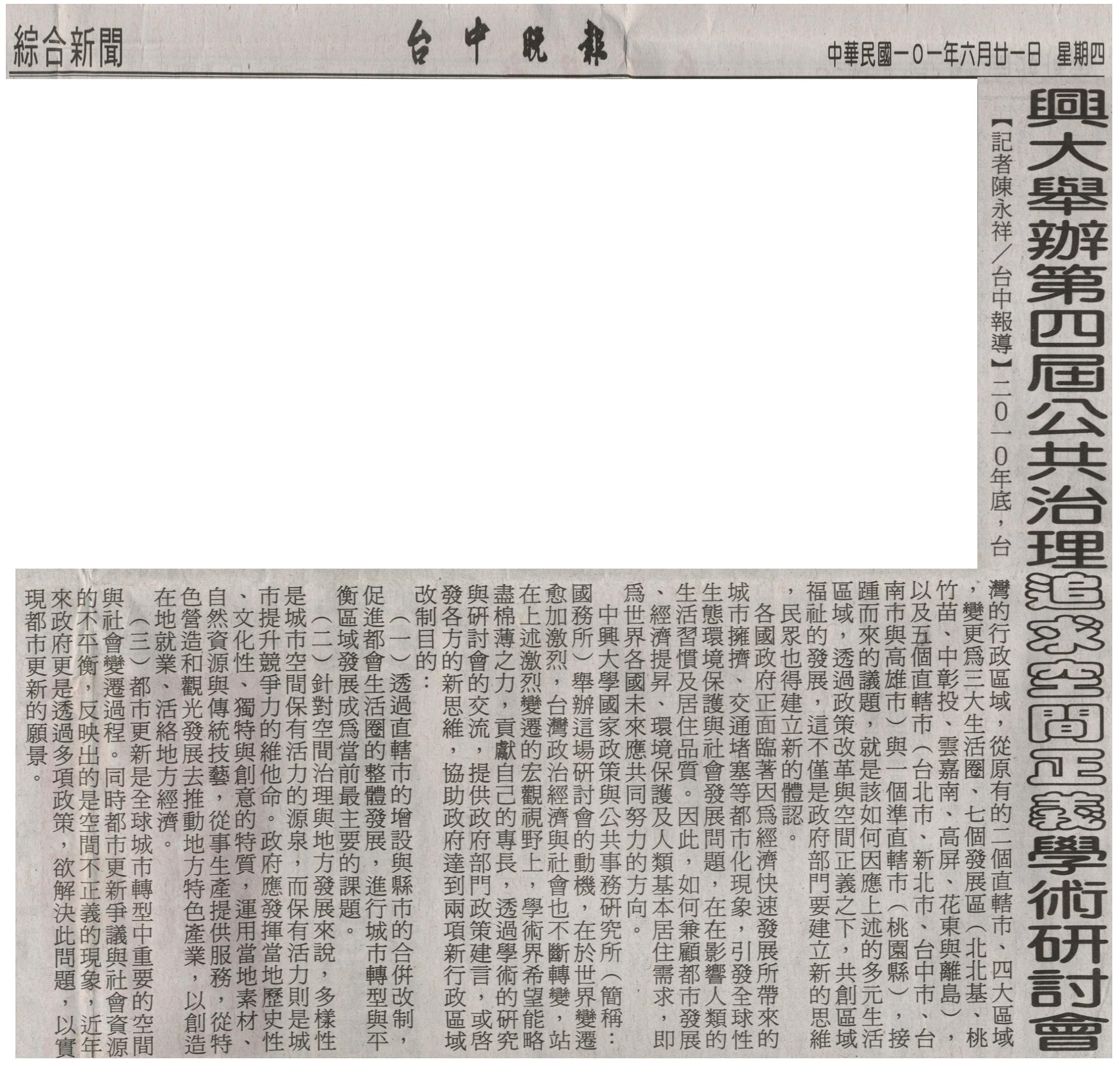 晚-1010621-綜合新聞-興大舉辦第四屆公共治理追求空間正義學術研討會.JPG