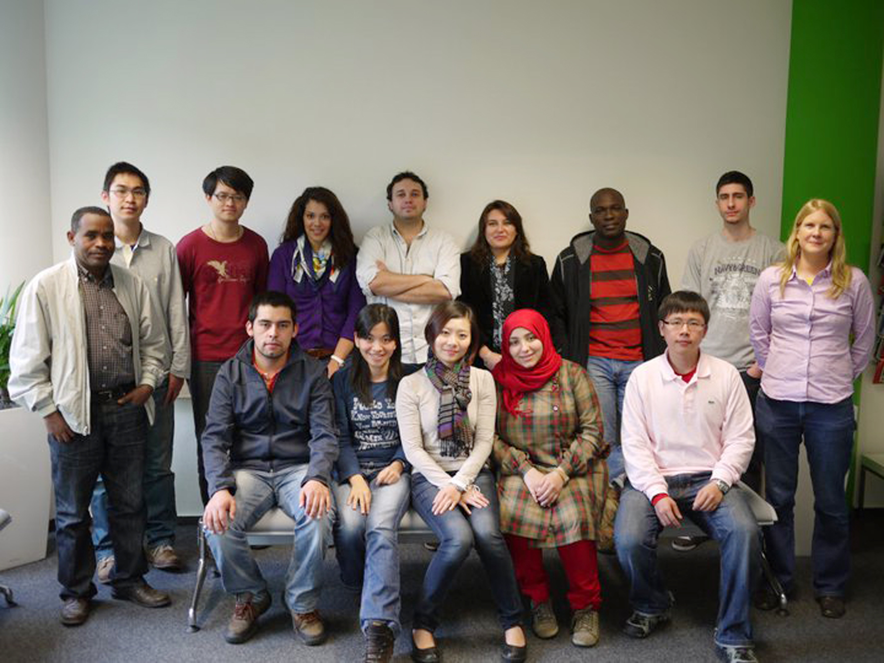 ![]() 王杏如(前排中)在Bonn波昂歌德語言學校學德語 ![]() 德國Ulm大學研究生活,王杏如(前排左)與實驗室同事合影 |