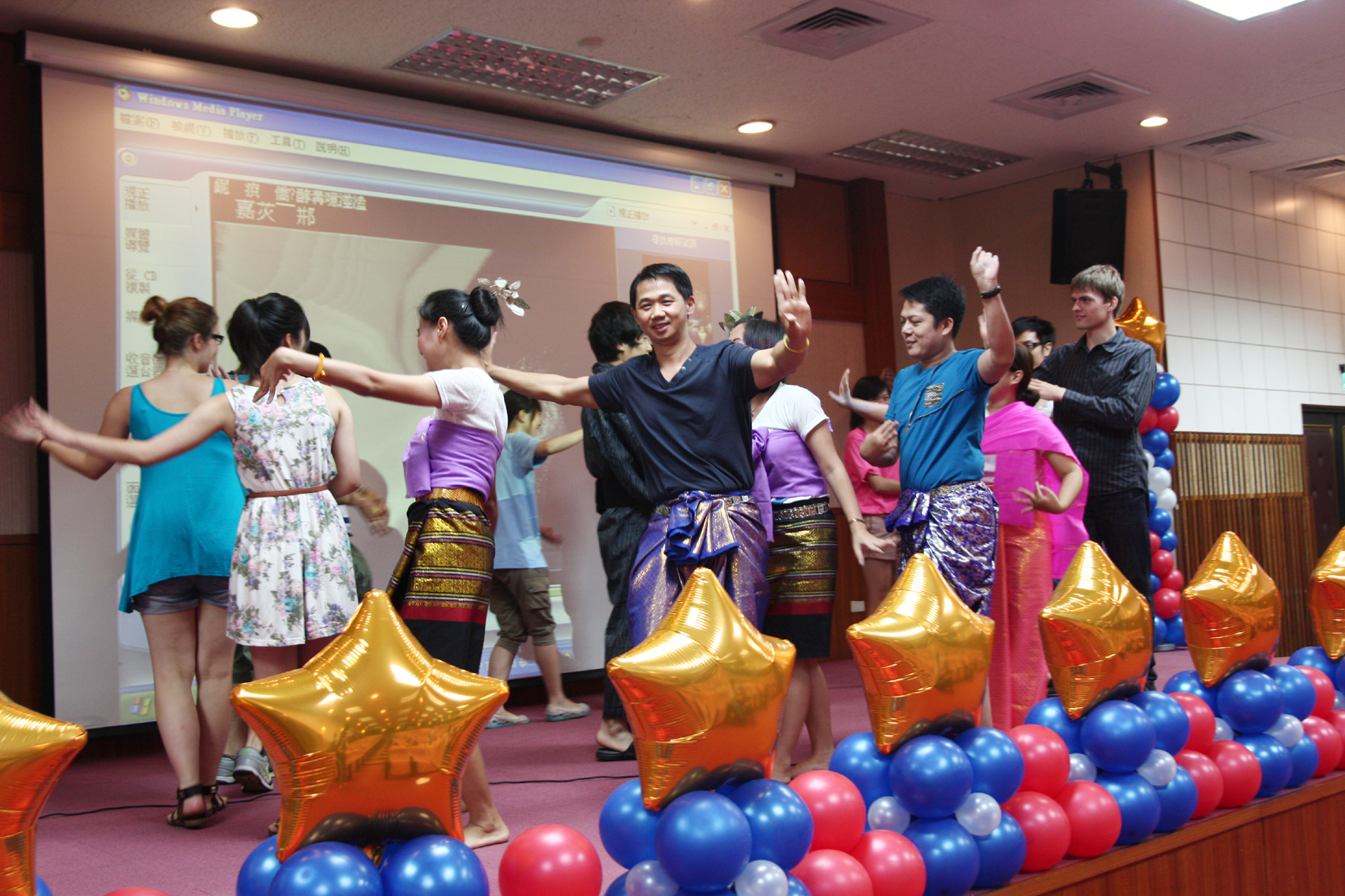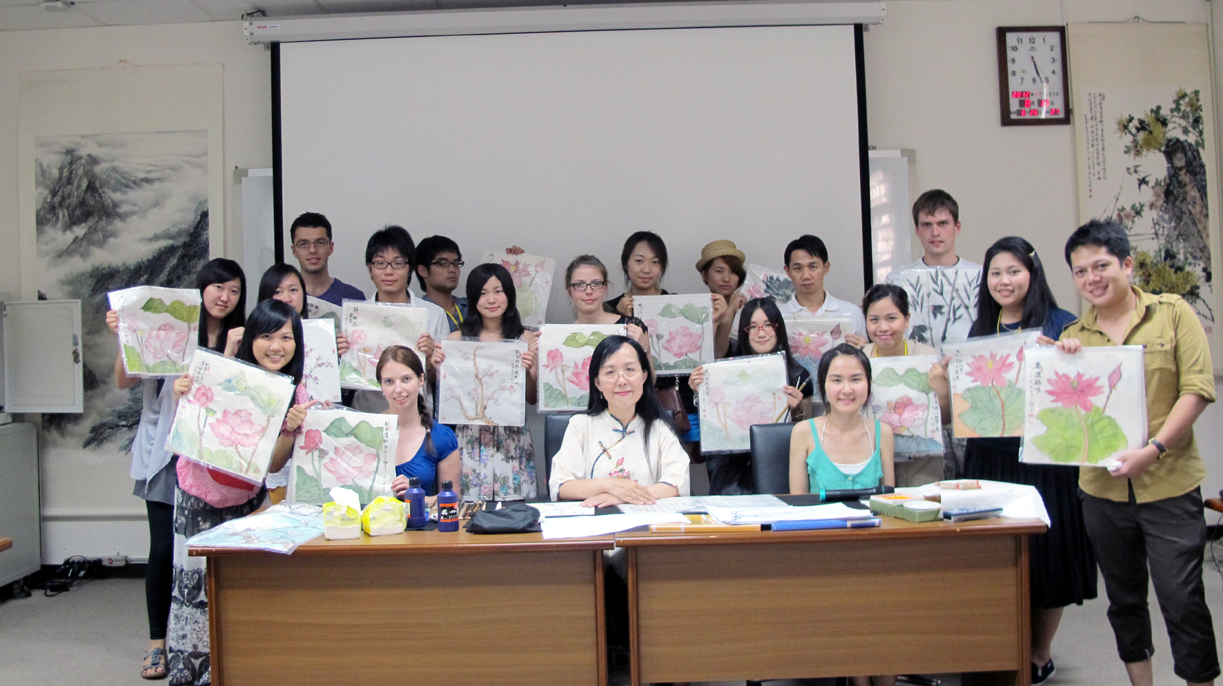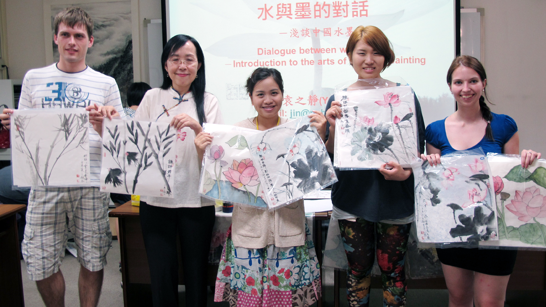 ![]() 各國學生上台跳泰國傳統舞蹈 ![]() 興大華語營的外國學生來自捷克、德國、南韓、泰國等國家,學習繪中國水墨畫 |