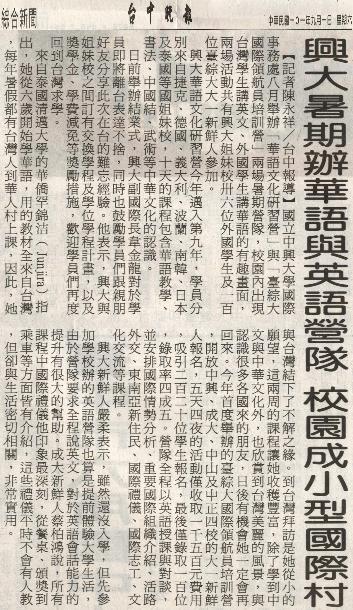 中晚-1010901-綜合新聞-興大暑期辦華語與英語營隊 校園成小型國際村.JPG