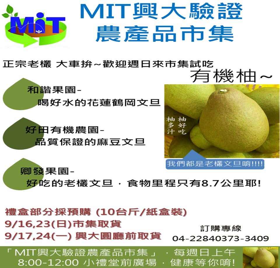 ★MIT 興大驗證農產品市集 --有機文旦開賣囉★
