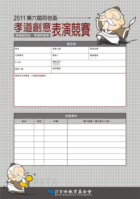2012第七屆百世盃孝道創意表演競賽-校園賽企劃案