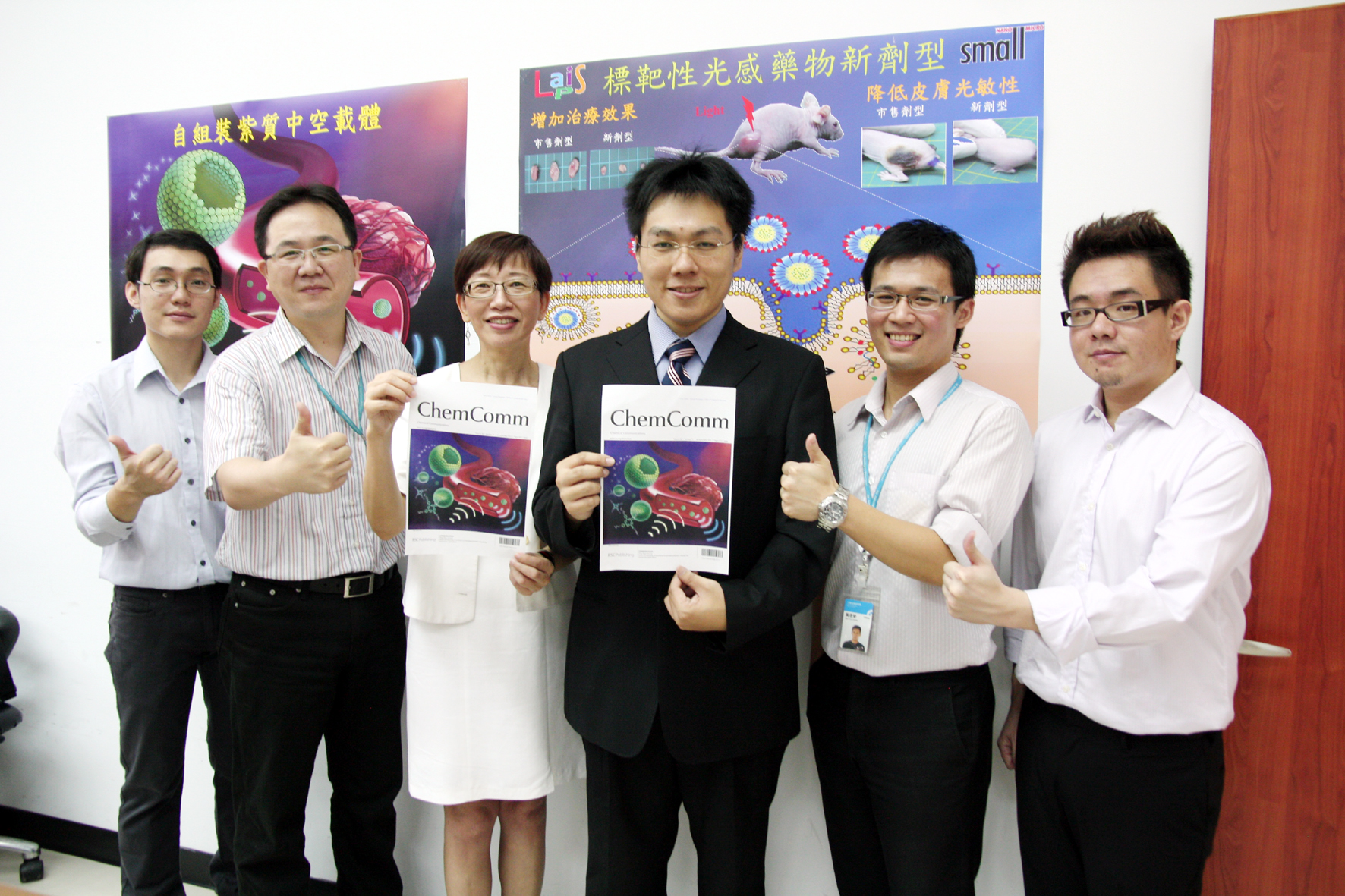 【文/賴秉杉、圖/媒體公關組】光動力腫瘤治療法是一種低侵入性的新興癌症治療方式,國立中興大學化學系賴秉杉副教授、台大醫院謝銘鈞教授、婁培人教授、工研院與興大博士生許維喆、研究助理游秀萍等人組成的團隊,經歷5年研究,共同開發新型態的藥物傳遞系統「標靶性高分子奈米微胞系統」,用來輸送疏水性光動力治療藥物,經活體試驗證實,可降低光動力療法中皮膚光敏感的副作用,並可有效提高抗腫瘤之效果與減少光感藥物用量,此項成果今年7月刊登於國際知名期刊Small。