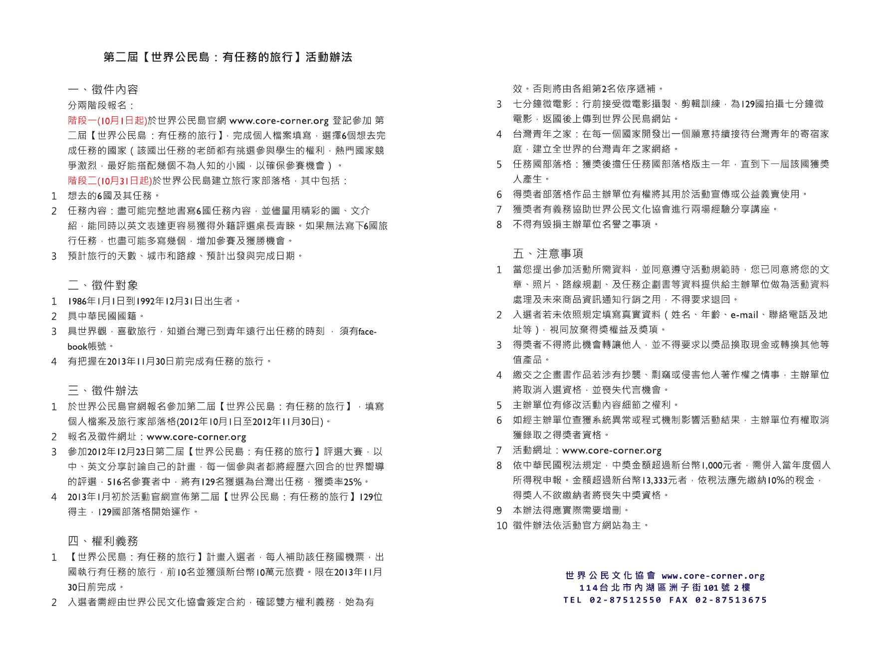 五、了解活動詳情、報名參加請上網:www.core-corner.org